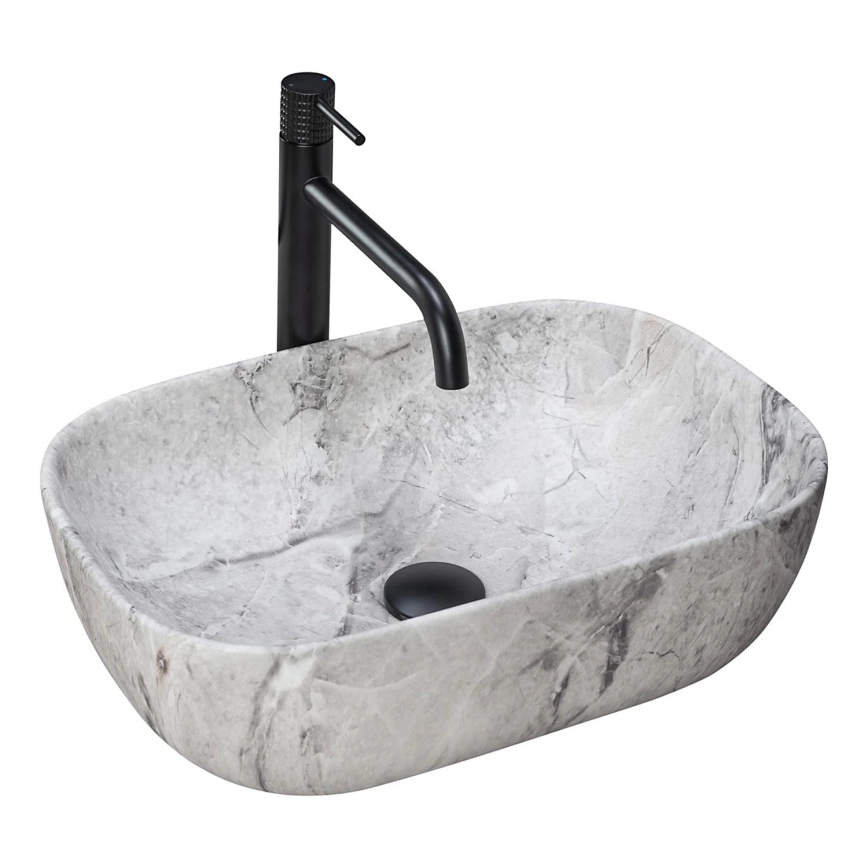 • REA-U8907 - Aufsatzwaschbecken BELINDA 33,5x46,5 cm Keramik/schwarz/Marmordekor