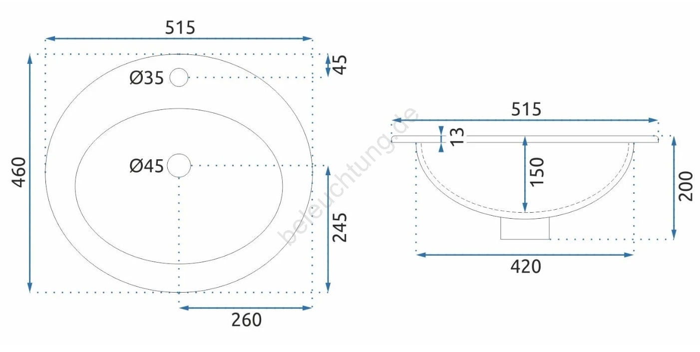 • Waschbeckenarmatur und Ablaufgarnitur sind nicht im Lieferumfang enthalten.