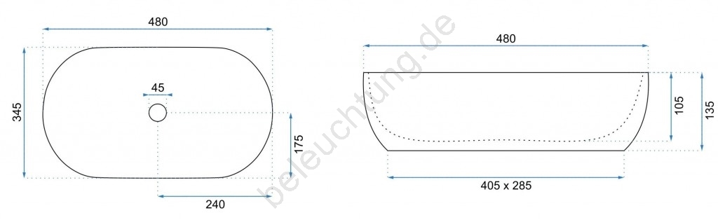 • REA-U0416 - Aufsatzwaschbecken AMELIA 34,5 x 48 cm Keramik/hochglanzweiß