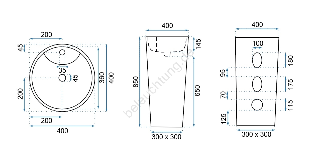REA-U5635 - Freistehendes Waschbecken BLANKA 85 x 40 cm, Keramik / Hochglanzweiß