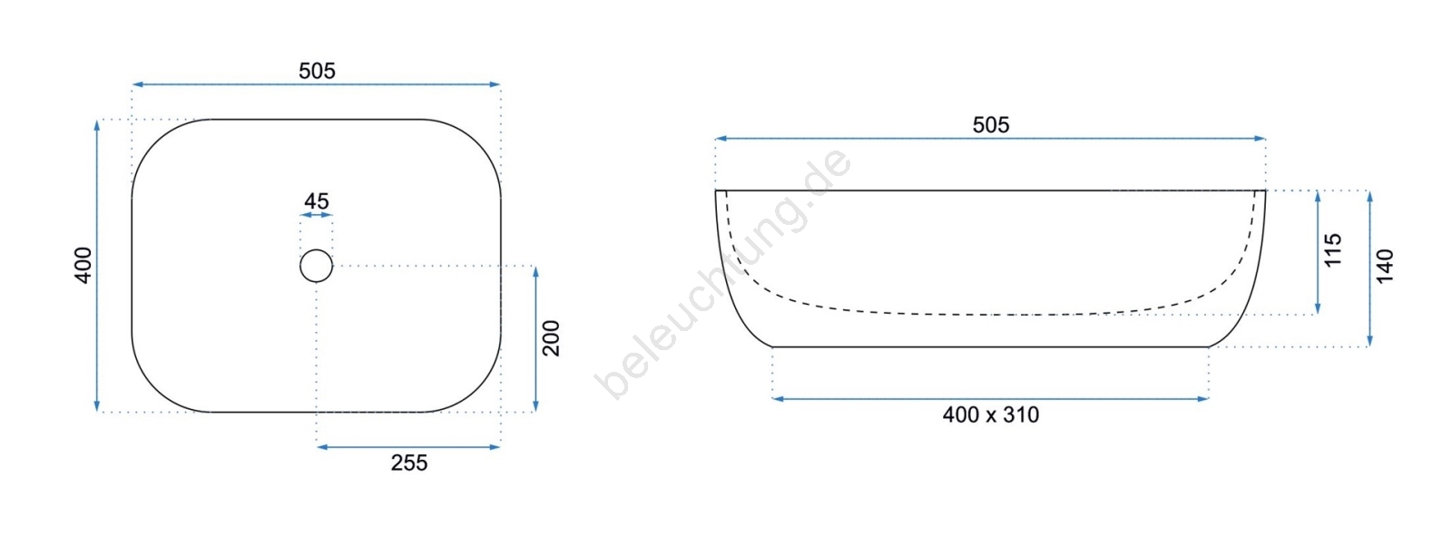 REA-U6300 - Aufsatzwaschbecken MONA SLIM 40 x 50,5 cm Keramik / Hochglanzweiß