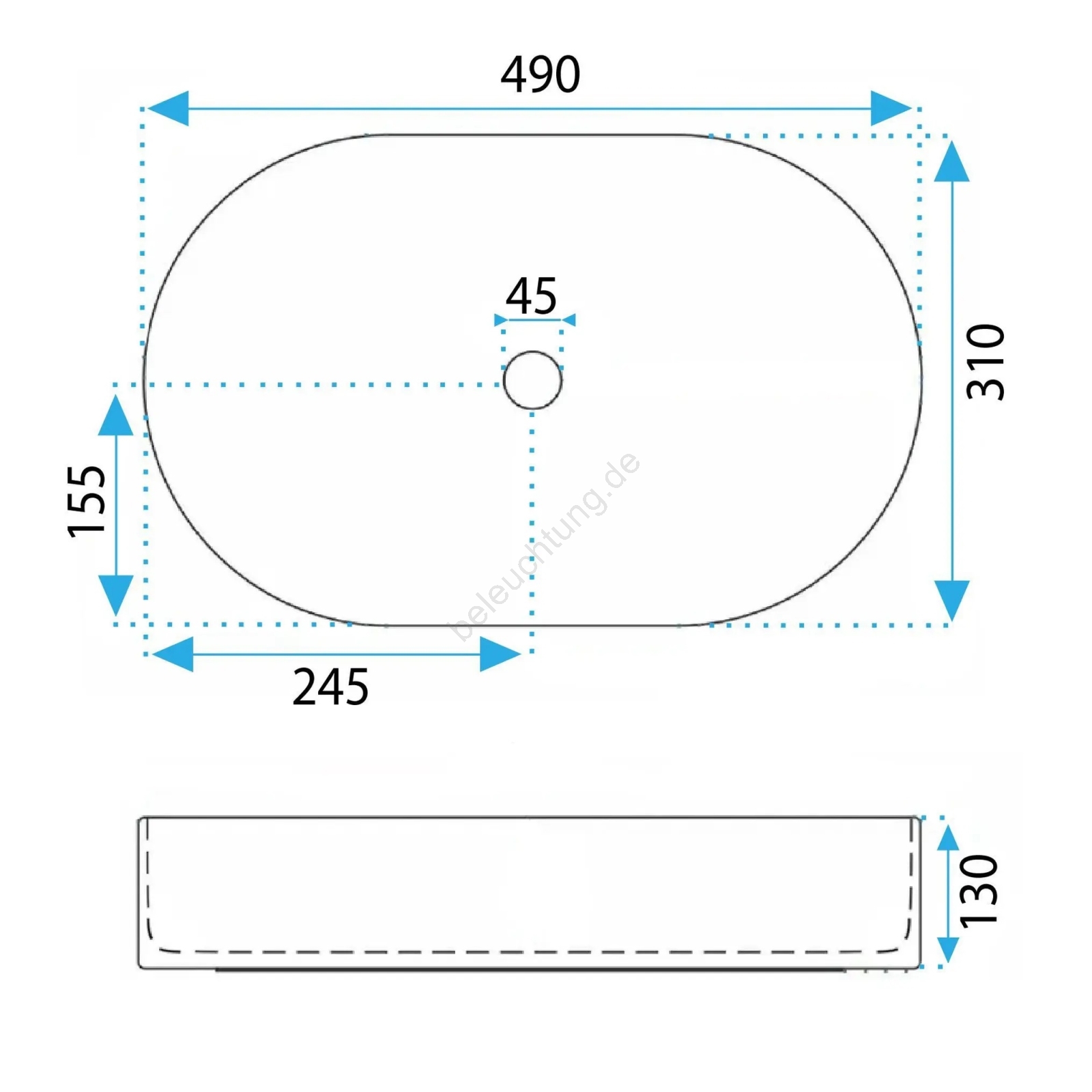 • REA-U6375 - Aufsatzwaschbecken VANDA 31x49 cm Keramik/mattblau