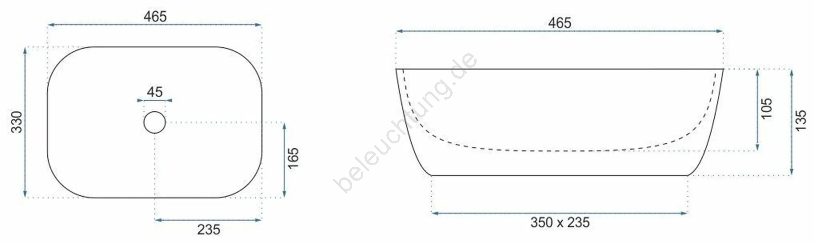 • Modernes und elegantes Waschbecken ohne Überlauf.