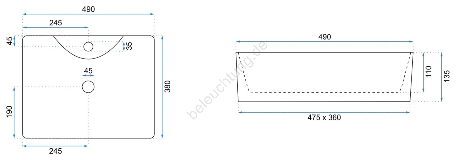 • Waschbeckenarmatur und Ablaufgarnitur sind nicht im Lieferumfang enthalten.