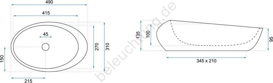 REA-U6649 - Aufsatzwaschbecken ROXY 31 x 49 cm, Keramik in Steinoptik