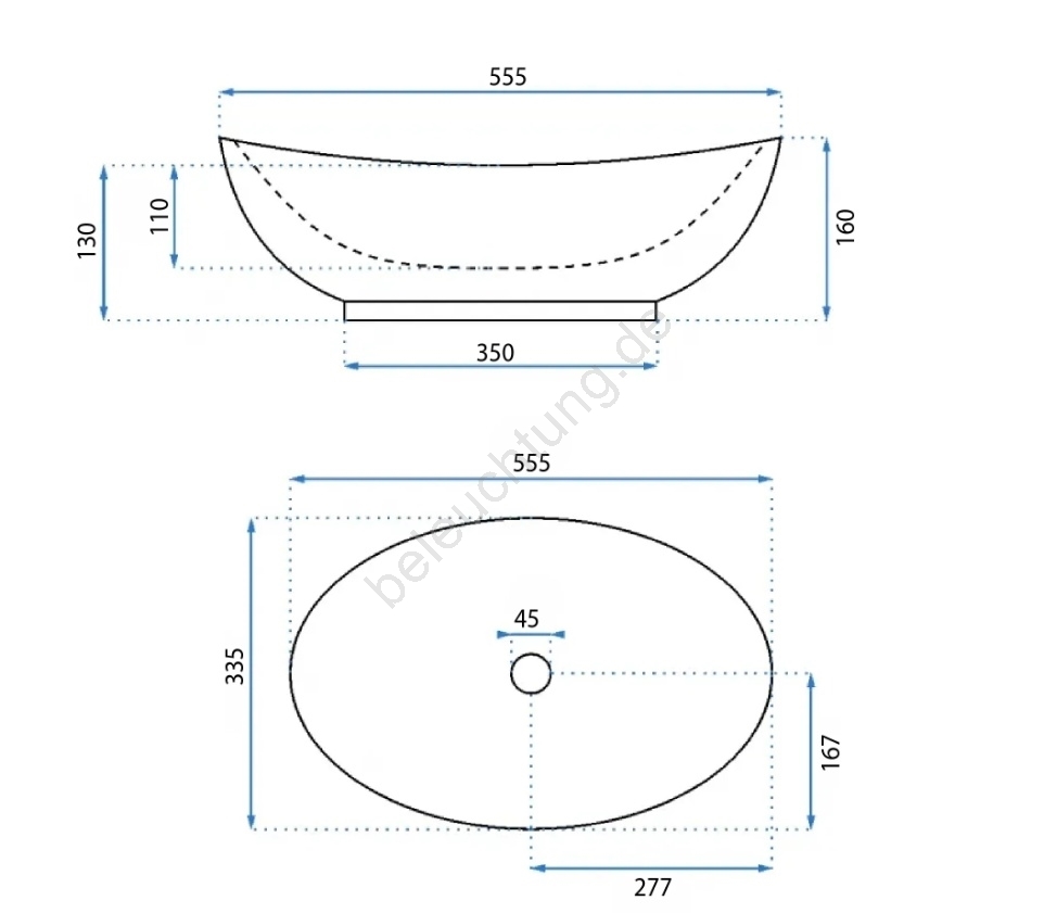 REA-U6801 - Aufsatzwaschbecken KATE 33,5x55,5 cm Keramik/glänzend weiß
