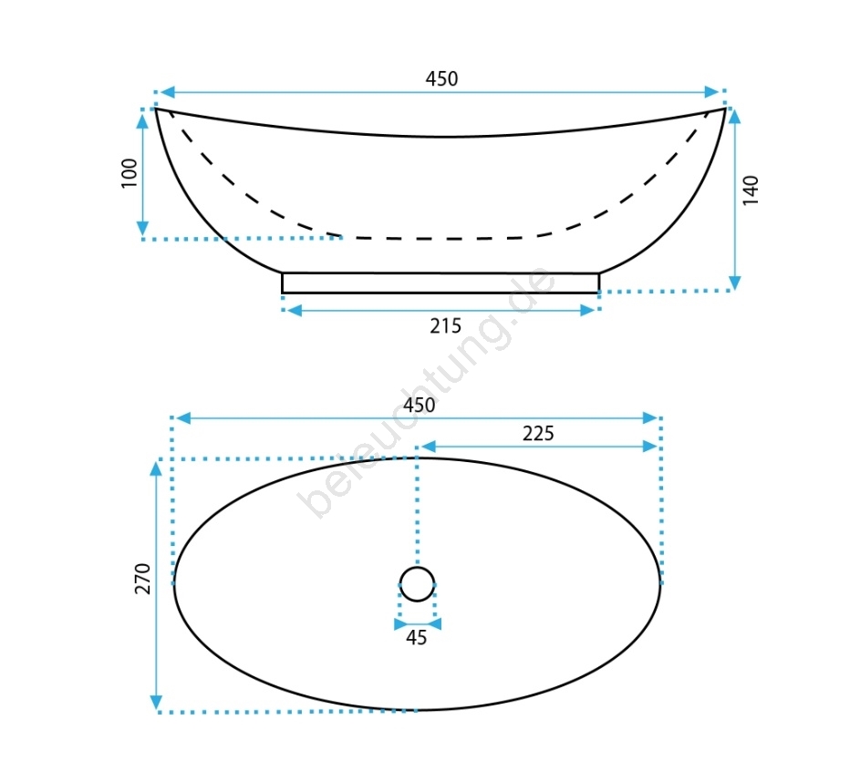 REA-U6802 - Aufsatzwaschbecken KATE 27x45 cm Keramik/glänzend weiß
