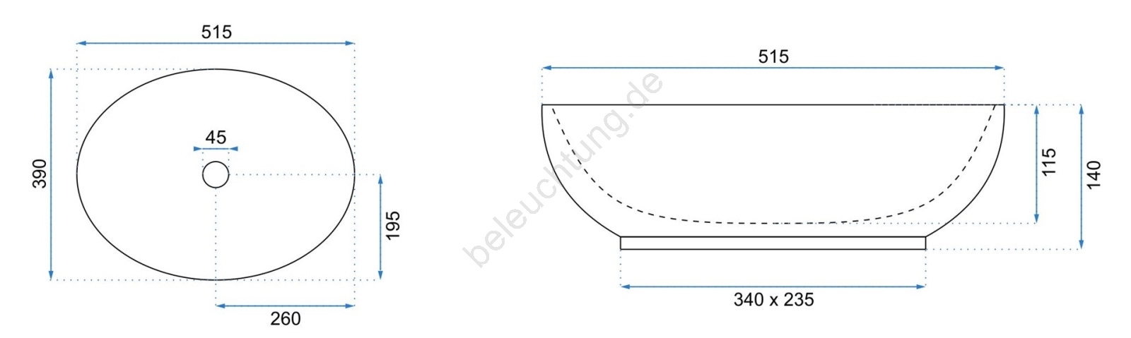 REA-U8198 - Aufsatzwaschbecken CAROLA SLIM 39x51,5 cm Keramik/hochglänzend weiß
