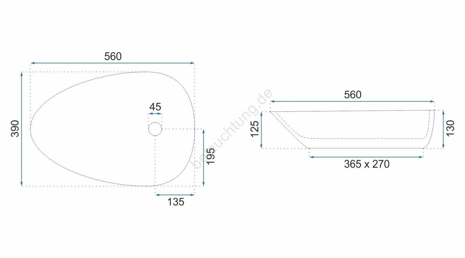 REA-U8536 - Aufsatzwaschbecken GRETA 39x56 cm Keramik/glänzend weiß