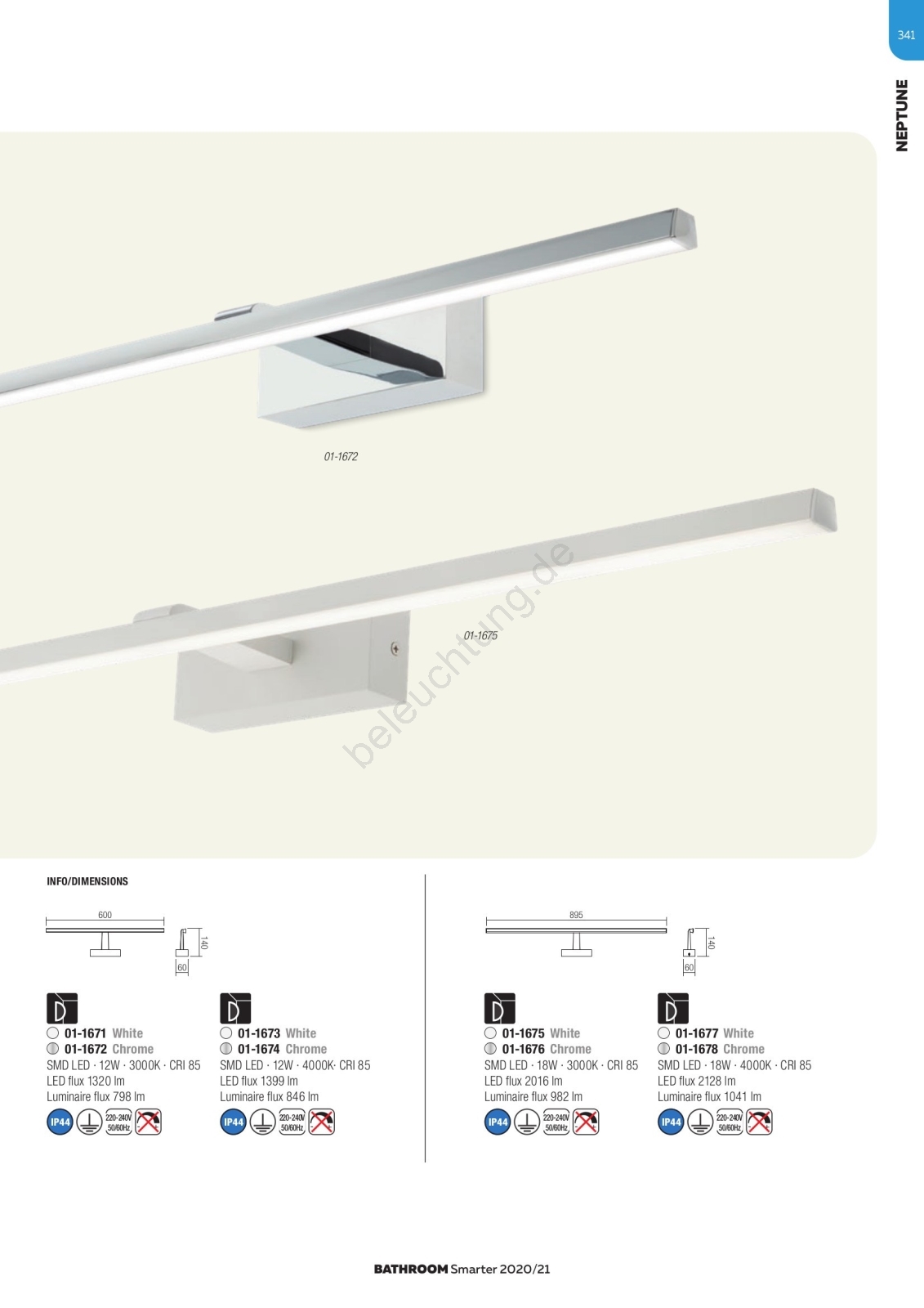 Redo 01-1672 - NEPTUNE LED-Spiegelleuchte für das Badezimmer, 12 W/230 V, 60 cm, IP44, glänzender Chrom