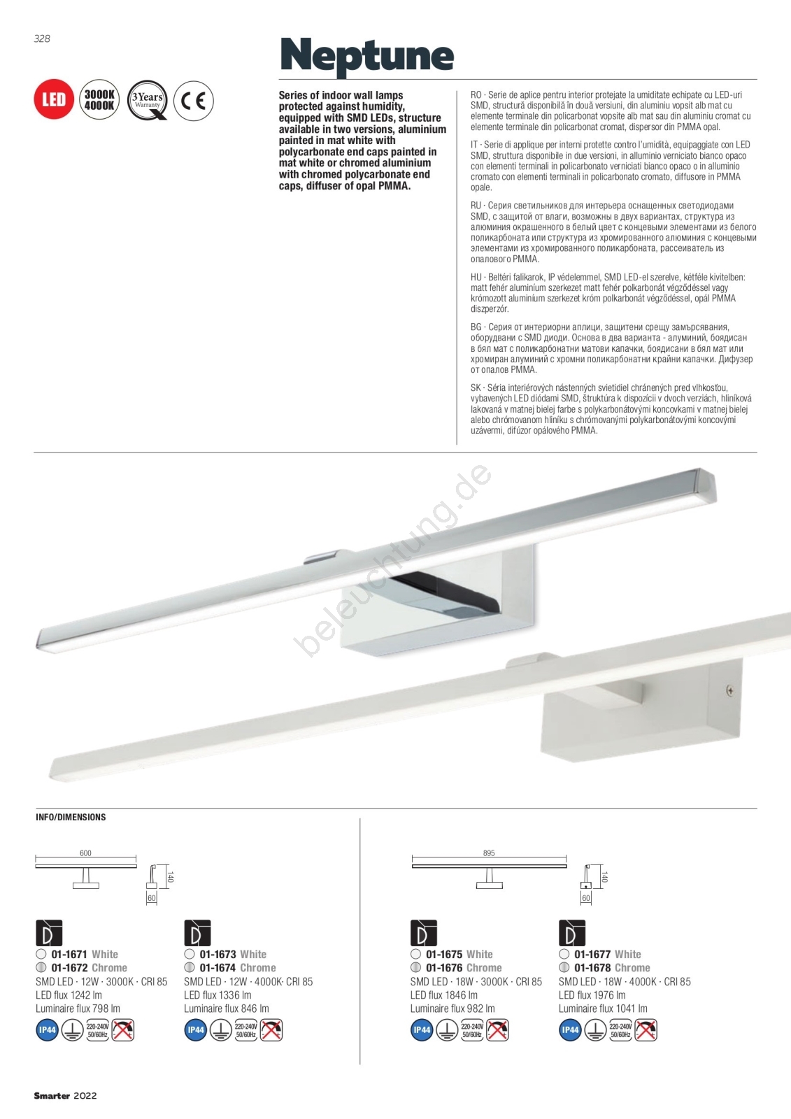 • Redo 01-1677 - LED-Beleuchtung für Badezimmerspiegel NEPTUNE, 18 W, 230 V, 89,5 cm, IP44, Weiß