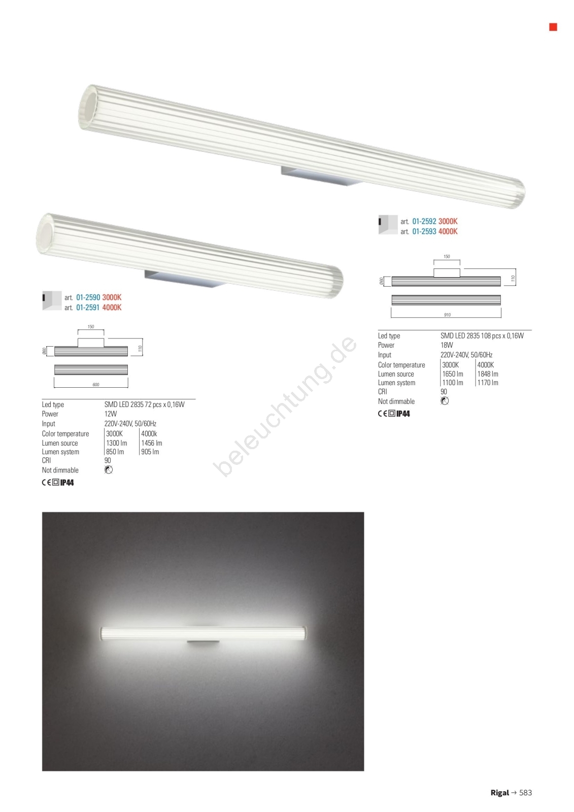 • Redo 01-2592 - LED-Badezimmer-Spiegelleuchte RIGAL LED/18W/230V 91 cm CRI 90 IP44 glänzender Chrom/Weiß
