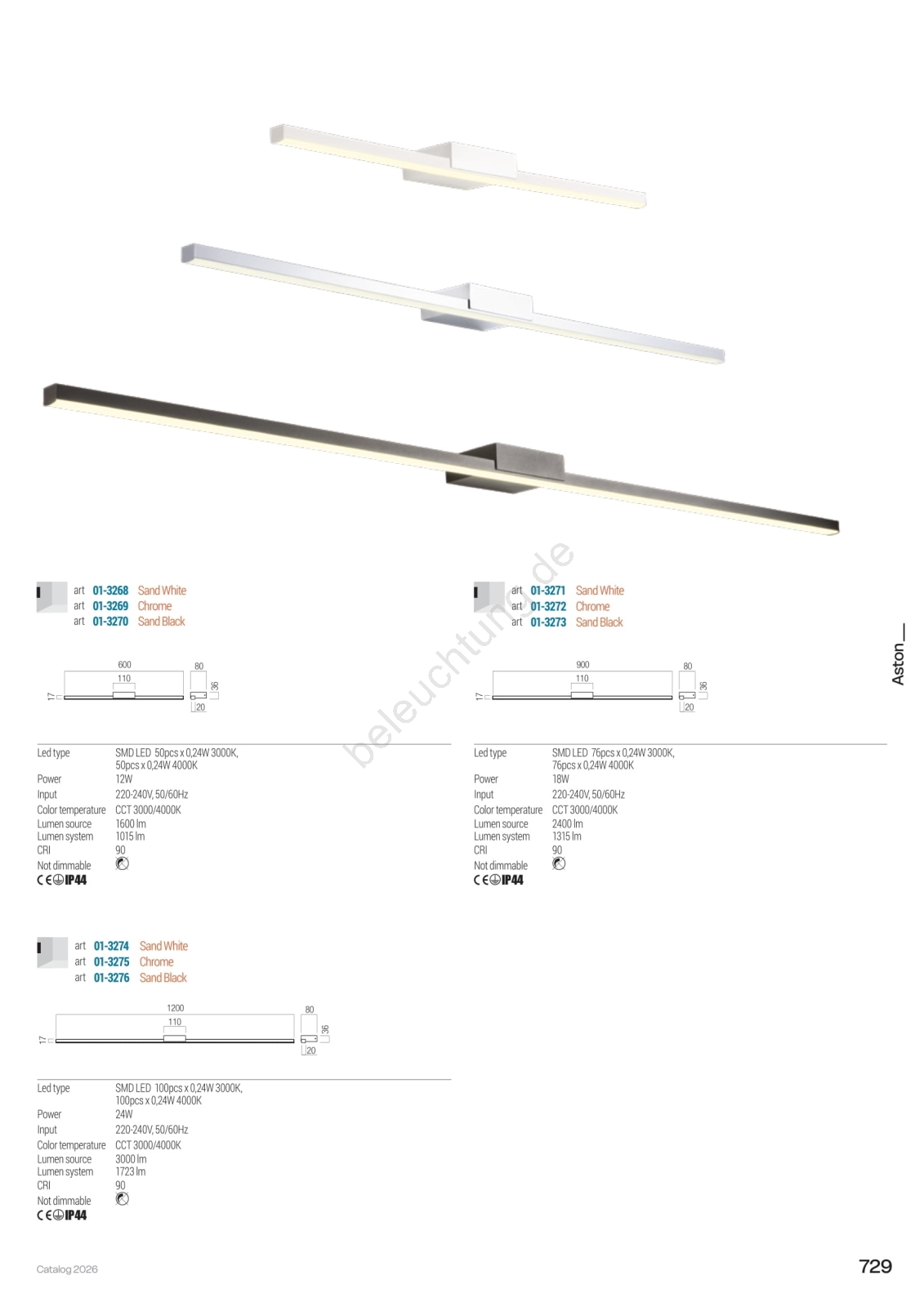 Redo 01-3274 - ASTON LED-Badezimmer-Spiegelleuchte, 24W, 230V, 3000/4000K, 120 cm, CRI 90, IP44, Weiß