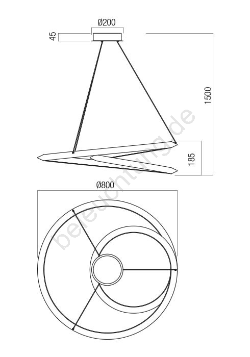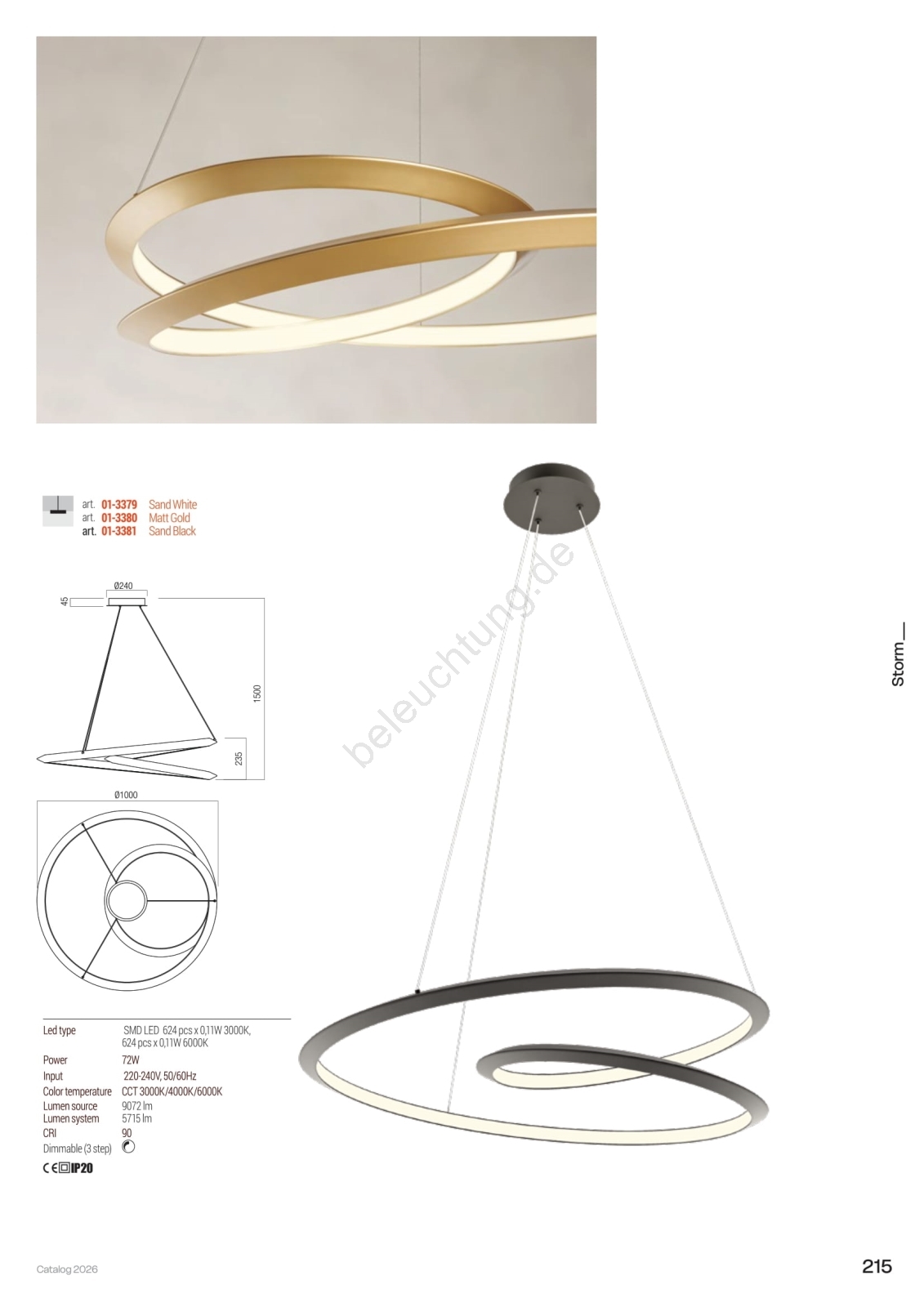 • Redo 01-3377 - STORM LED-Pendelleuchte, dimmbar, an Stahlseil, 60W/230V, 3000/4000/6000K, CRI 90, Ø 80 cm, gold