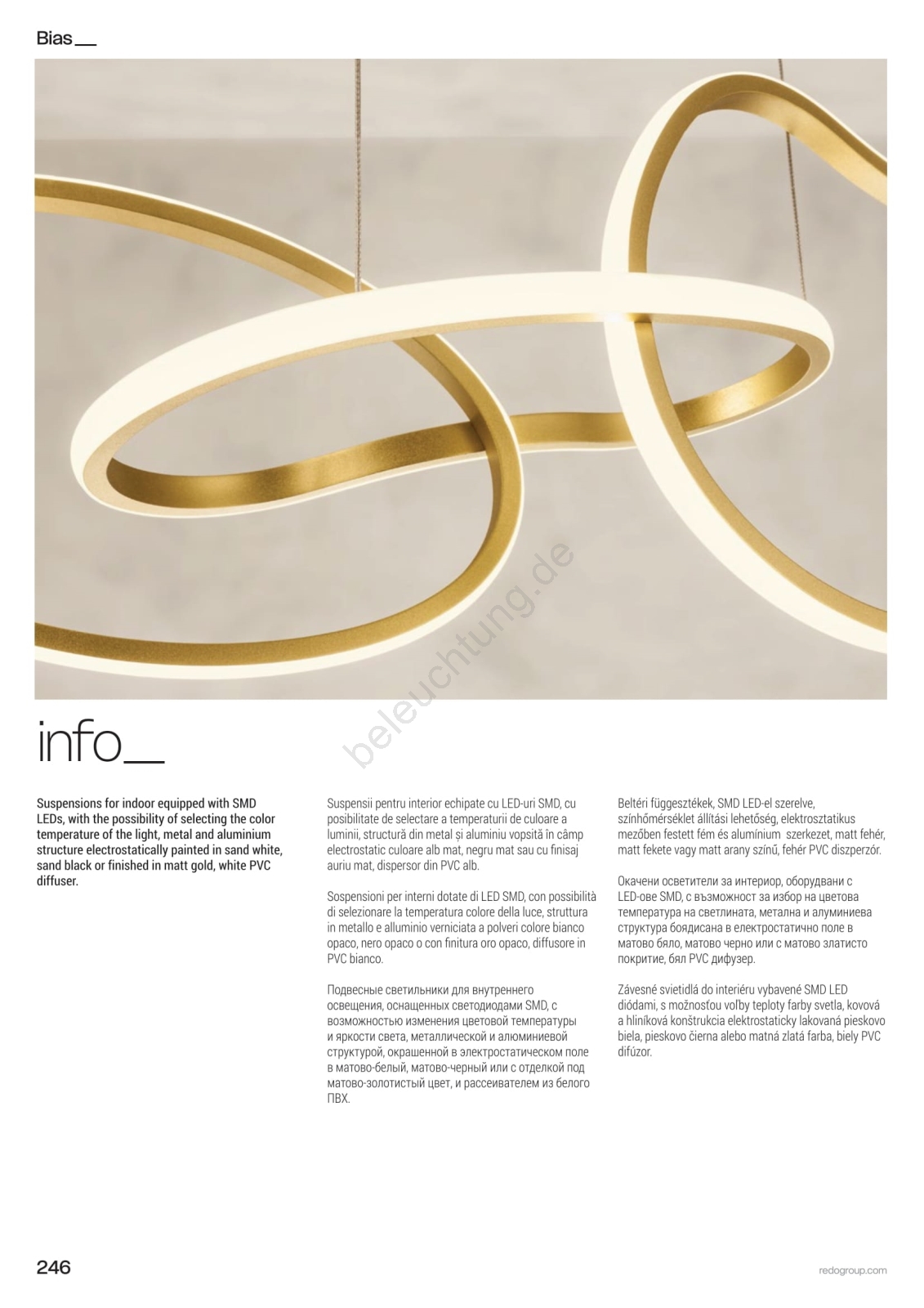 • Redo 01-3392 - Dimmbare LED-Pendelleuchte BIAS mit Kabelaufhängung LED/120W/230V 3000/4500/6500K CRI 90 goldfarben