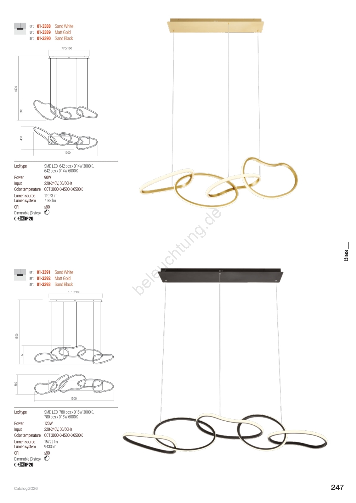 • Redo 01-3392 - Dimmbare LED-Pendelleuchte BIAS mit Kabelaufhängung LED/120W/230V 3000/4500/6500K CRI 90 goldfarben