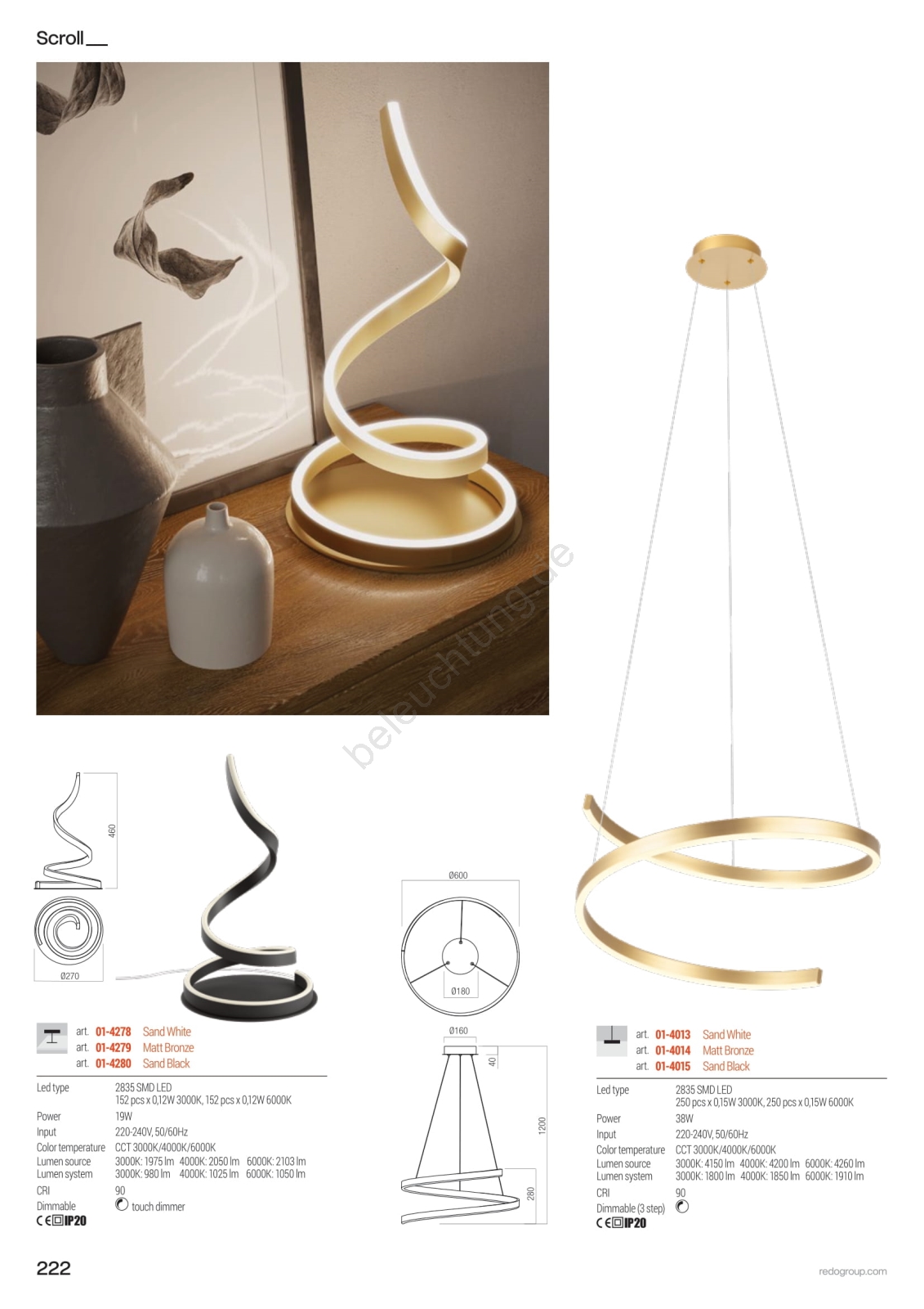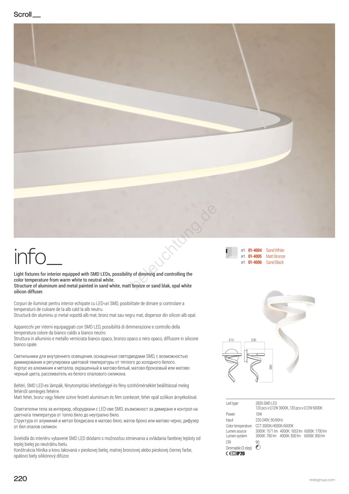 • Redo 01-4013 - LED dimmbare Hängeleuchte an Kabel SCROLL LED/38W/230V 3000K/4000K/6000K CRI 90 Ø 60 cm weiß
