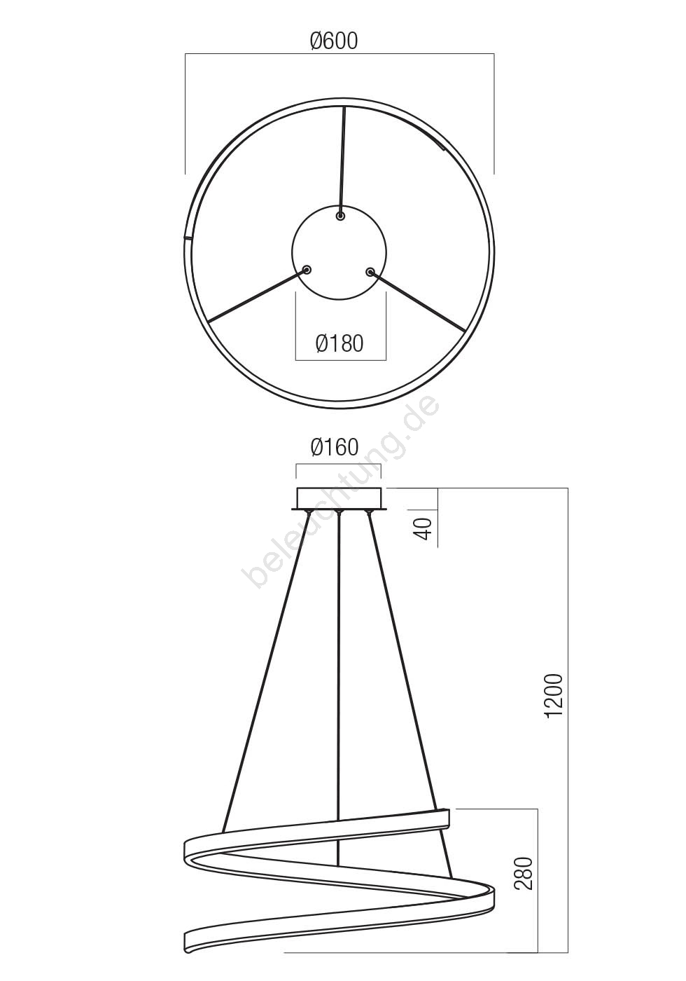 • Redo 01-4015 - Dimmbare LED-Pendelleuchte an Kabel SCROLL, LED/38W/230V, 3000K/4000K/6000K, CRI 90, Ø 60 cm, schwarz
