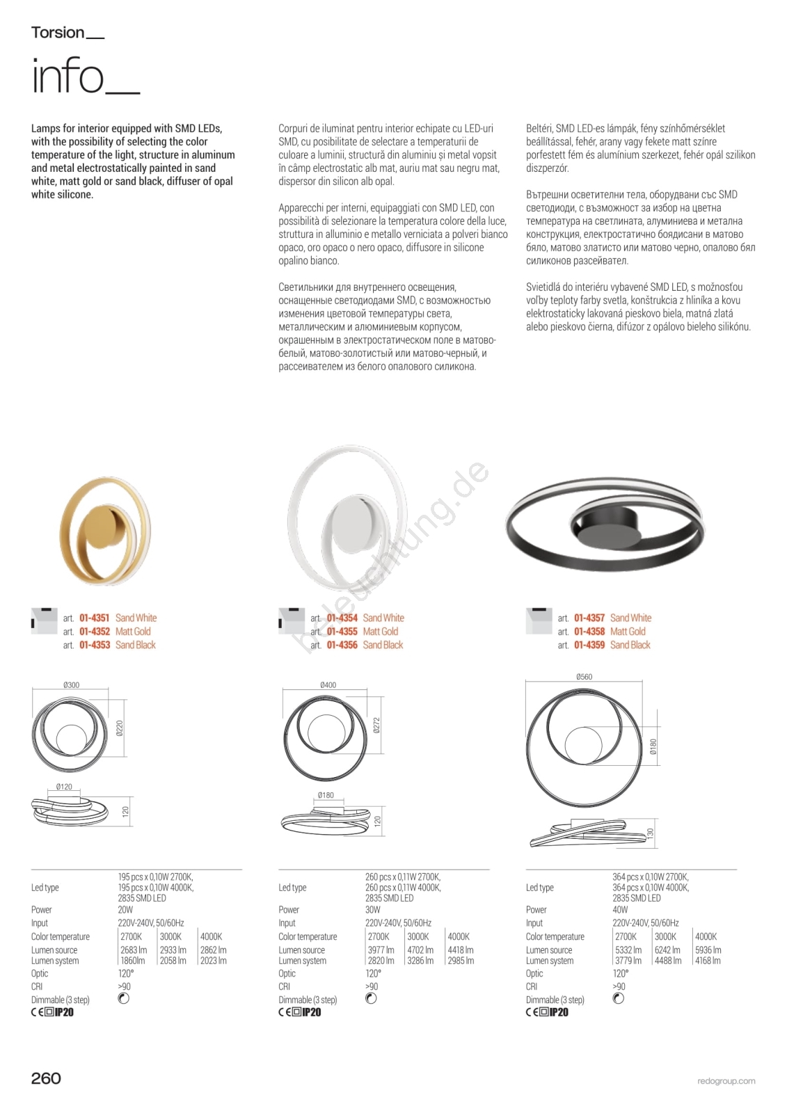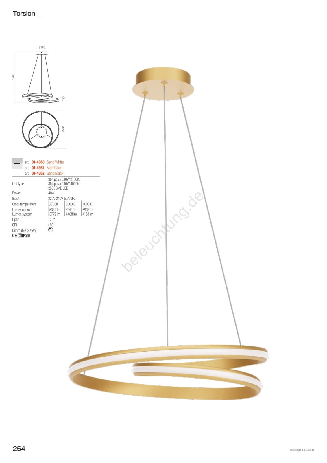 • Redo 01-4361 - TORSION LED, dimmbare Pendelleuchte an Stahlseil, LED/40W/230V, 2700/3000/4000K, CRI 90, Ø 56 cm, goldfarben