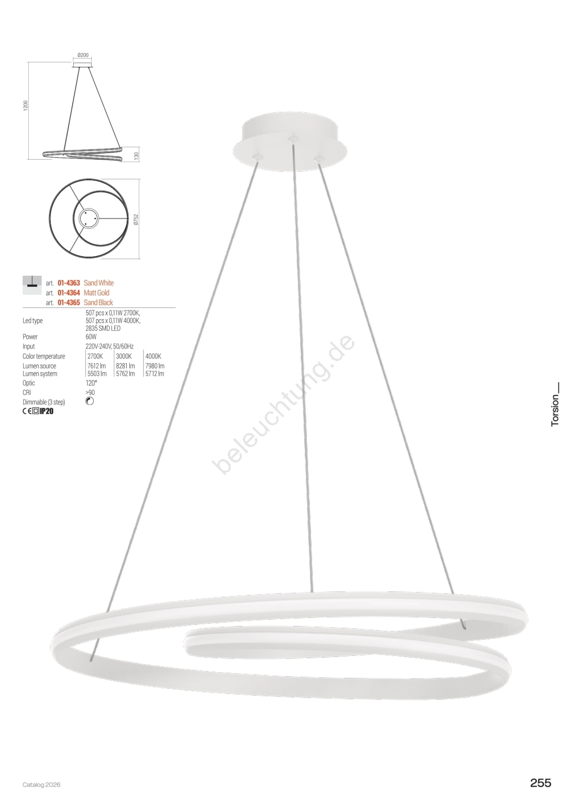• Redo 01-4365 - dimmbare, seilabhängige LED-Pendelleuchte TORSION LED/60W/230V 2700/3000/4000K CRI 90 Ø 75,2 cm schwarz