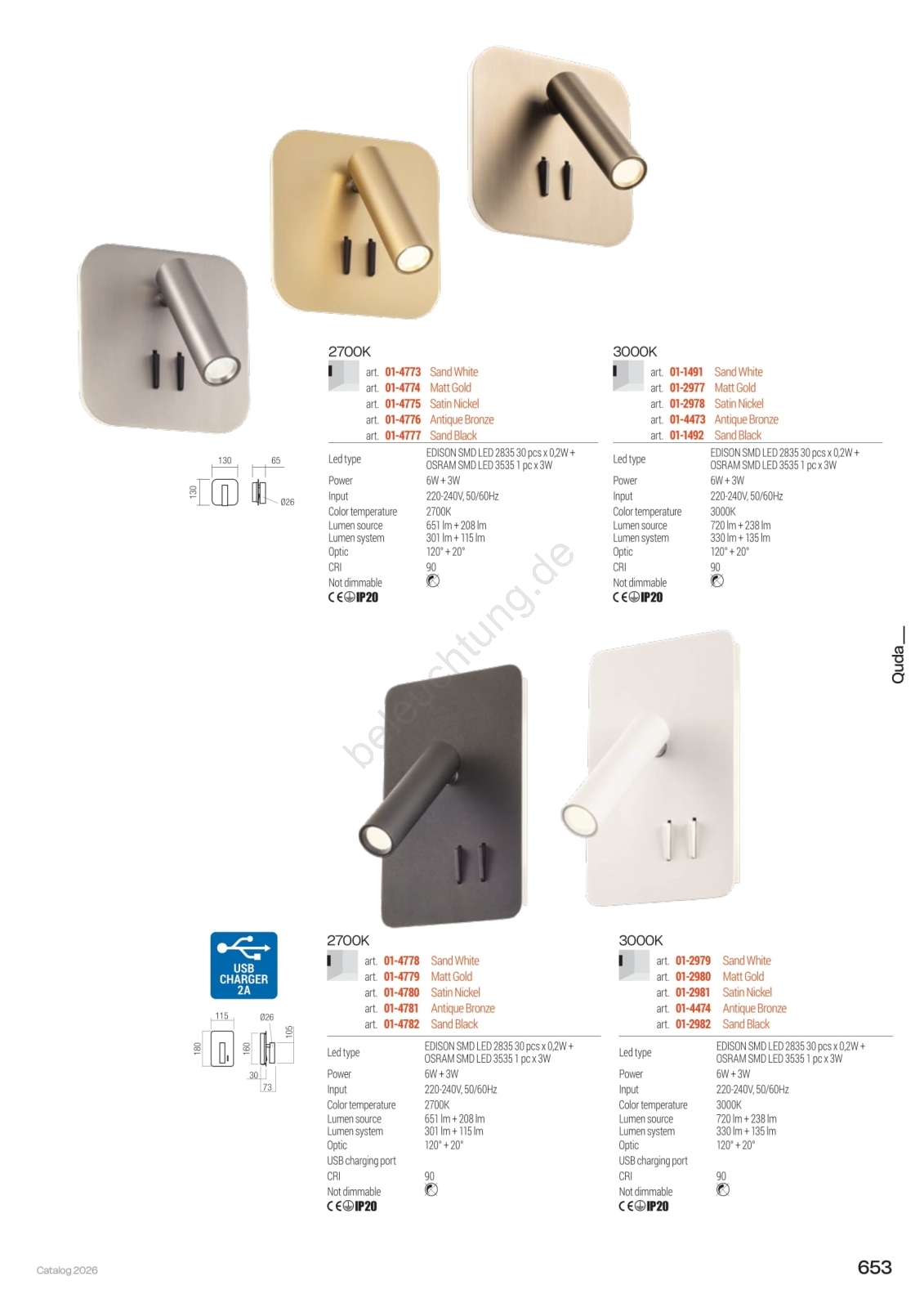 • Redo 01-4473 - QUDA LED-Wandleuchte, LED 6W/230V + LED 3W, CRI 90, bronzefarben