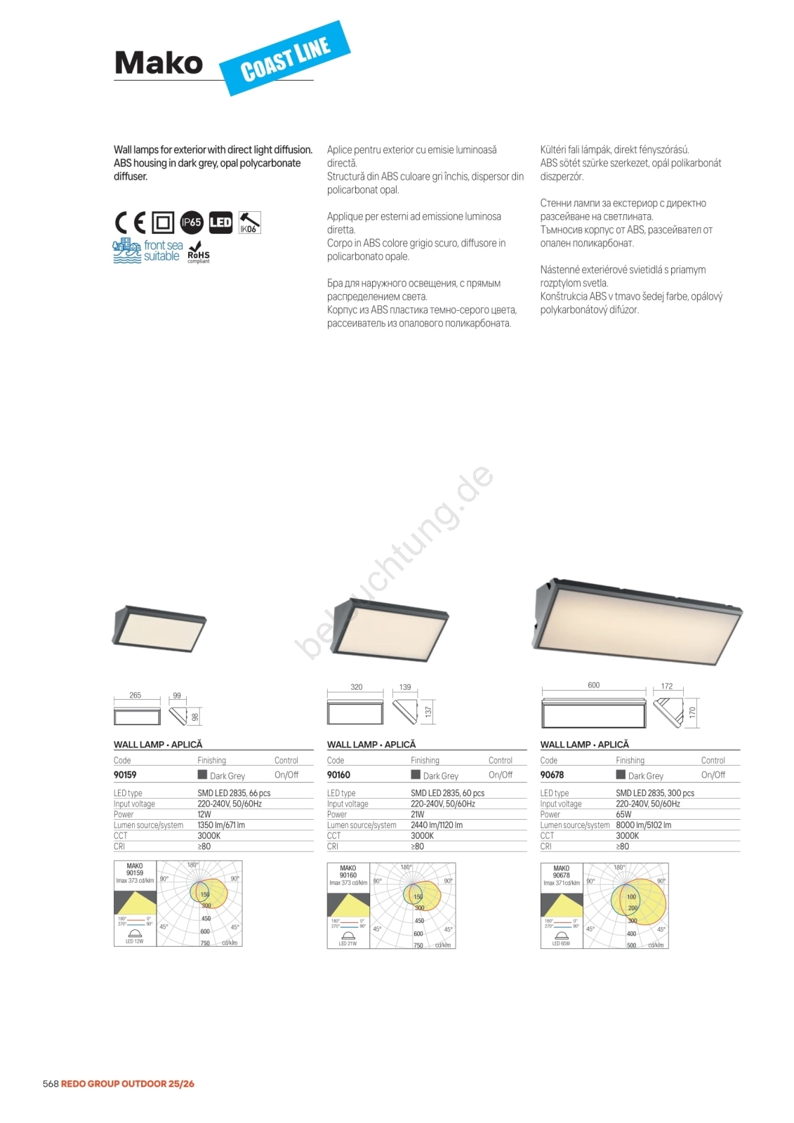 Redo 90678 - LED Außen-Wandleuchte MAKO LED/65W/230V 3000K IP65 Anthrazit