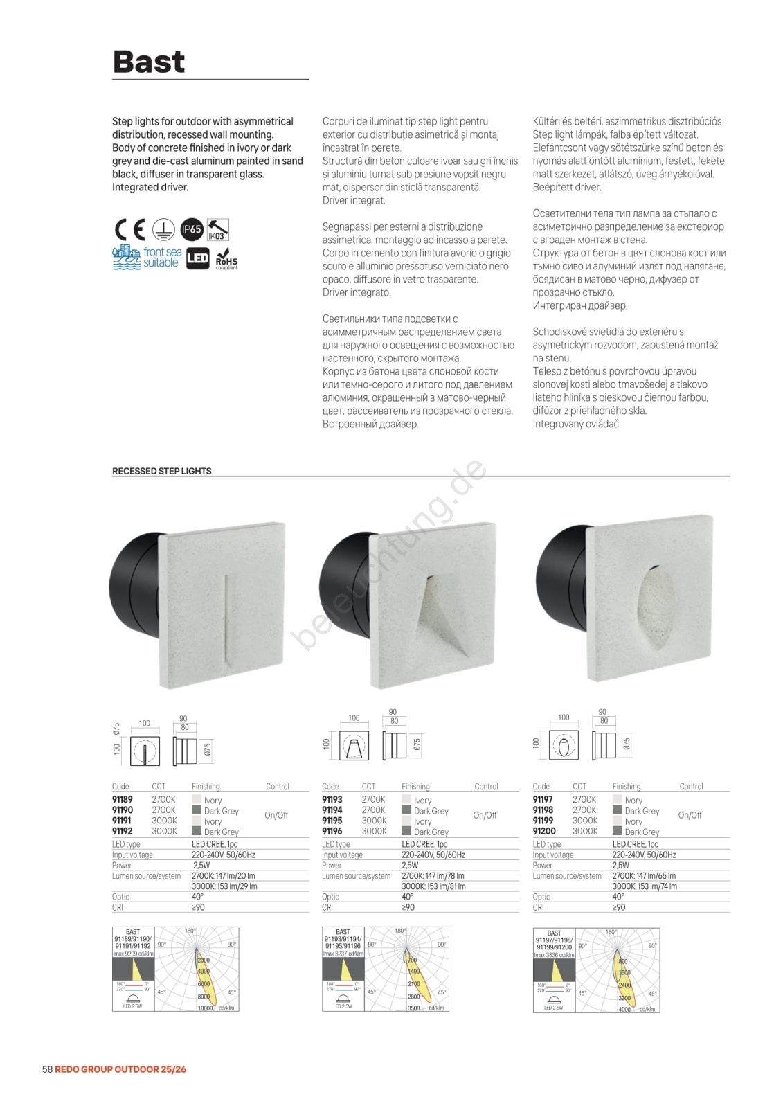• Redo 91199 - LED-Außen-Orientierungsleuchte BAST LED/2,5W/230V 3000K CRI 90 IP65 grau