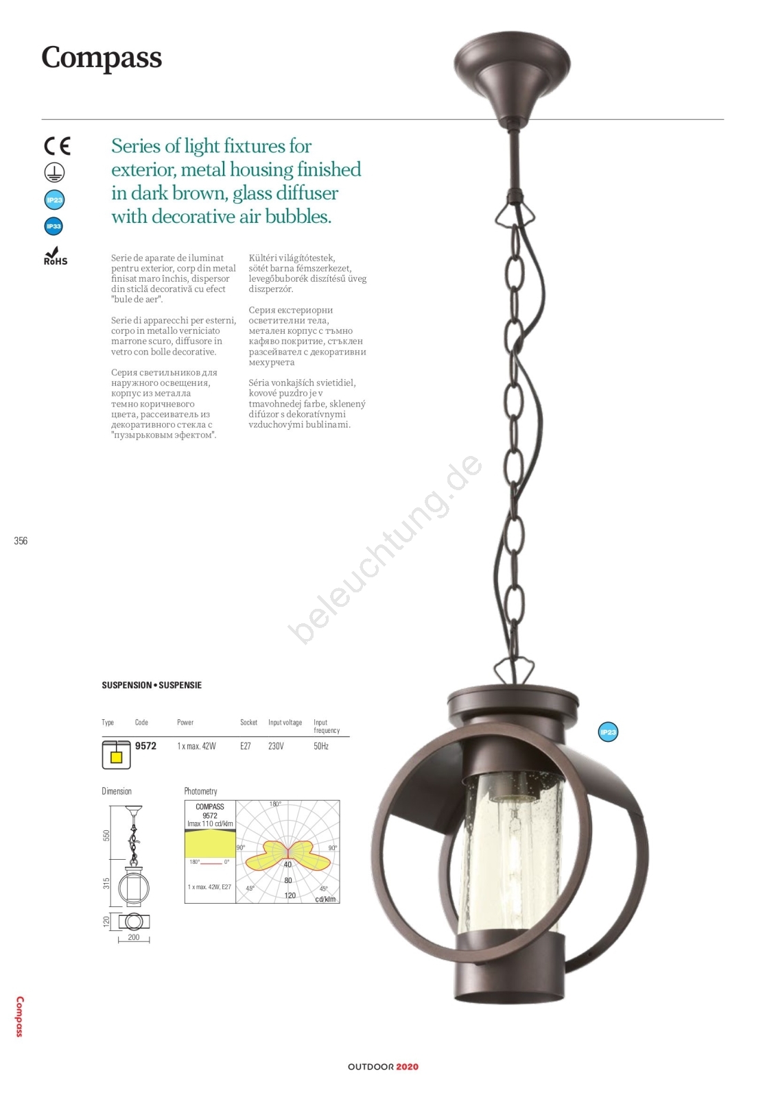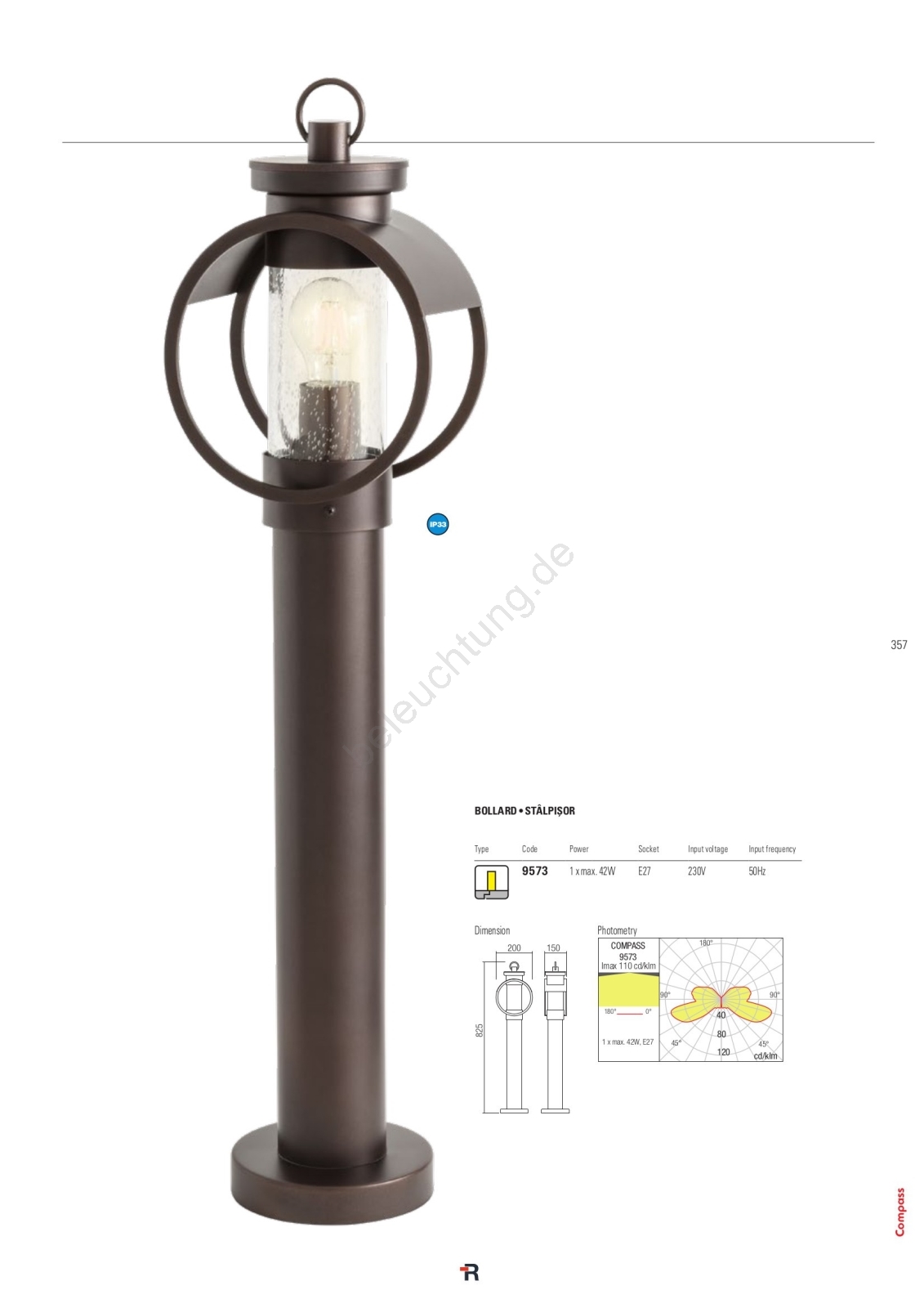 Redo 9573 - Außenlampe COMPASS 1xE27/42W/230V IP33 zeichnet sich durch schönes und funktionales Design aus. Eine Glühbirne mit E27 Sockel ist für die Leuchte geeignet. Hier, können Sie andere Glühlampen zu vorteilhaften Preisen kaufen. Sie erhalten eine attraktive Ergänzung für Ihr Zuhause.