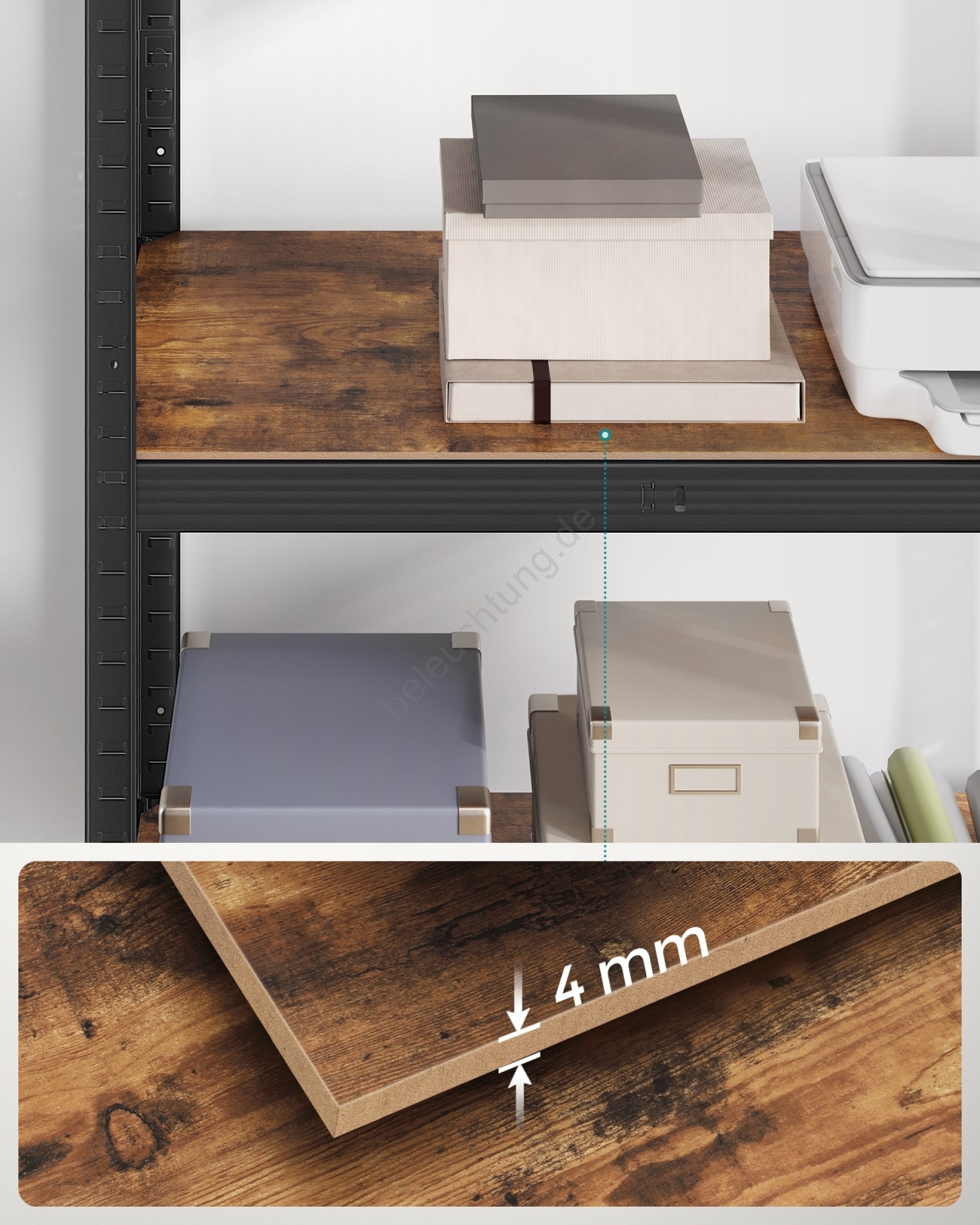 • Im Lieferumfang enthalten ist ein Wandbefestigungsset/Anti‑Kipp‑Sicherung, mit dem Sie das Regal an der Wand fixieren können, um zusätzliche Stabilität und Sicherheit zu gewährleisten.