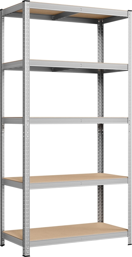• Jeder Regalboden trägt bis zu 120 kg und nimmt problemlos Farbeimer, Werkzeuge und Fitnessgeräte auf.