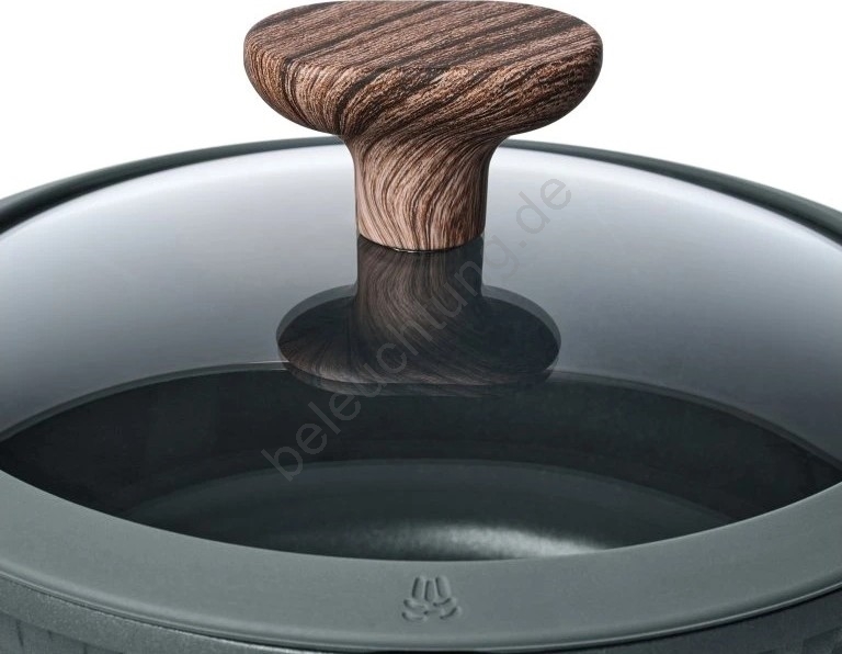 • Im Lieferumfang ist ein robuster Glasdeckel mit Silikonrand und Dampfauslassventil enthalten, der eine effektive Beobachtung des Garvorgangs ohne Wärmeverlust ermöglicht.