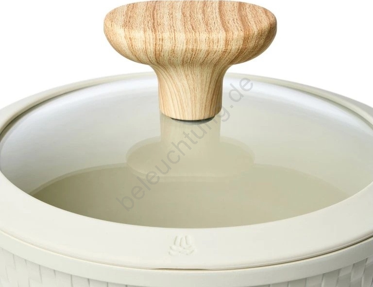 • Im Lieferumfang ist ein transparenter Glasdeckel mit Silikonrand und Dampfablassöffnung enthalten, der das Überprüfen des Garvorgangs ohne Anheben ermöglicht.