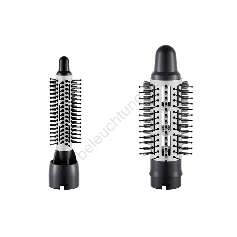 • Entdecken Sie die Heißluftbürste, die alles kann: Konzentrator für schnelles Trocknen, 20-mm-Bürste für Pony und kurze Haare sowie 40-mm-Bürste für mittellanges und langes Haar.