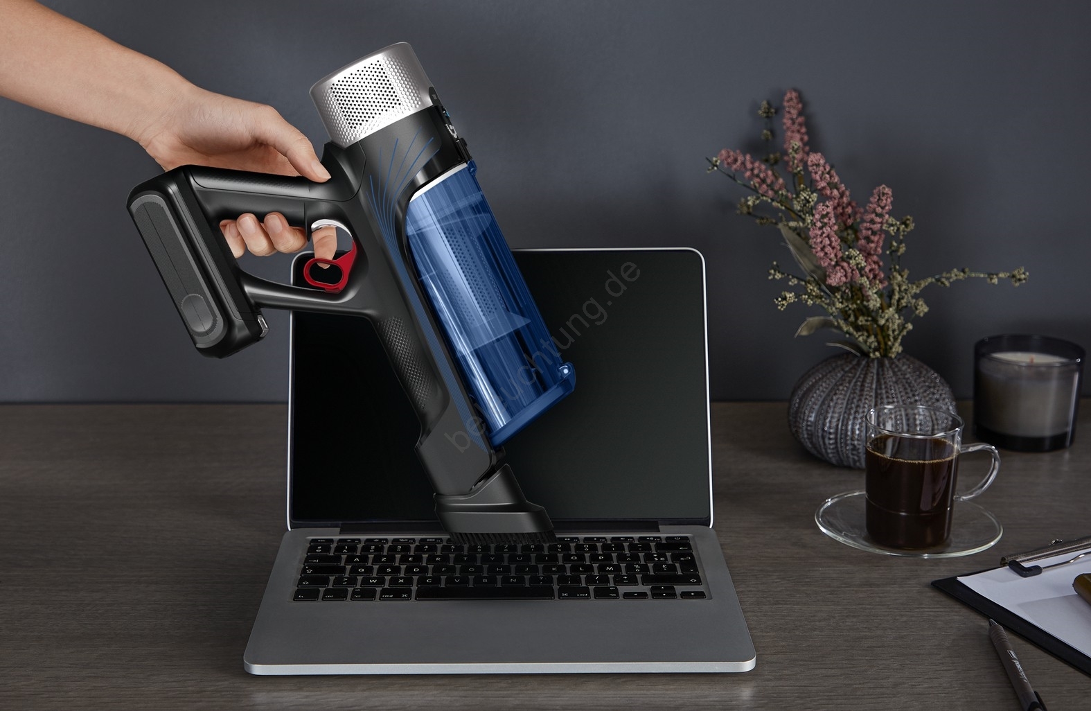 • Der Staubsauger ist extrem leicht: die Handeinheit wiegt ca. 1,1 kg, das gesamte Gerät ca. 2 kg — Handhabung und Reinigung unter Möbeln werden dadurch deutlich einfacher.
