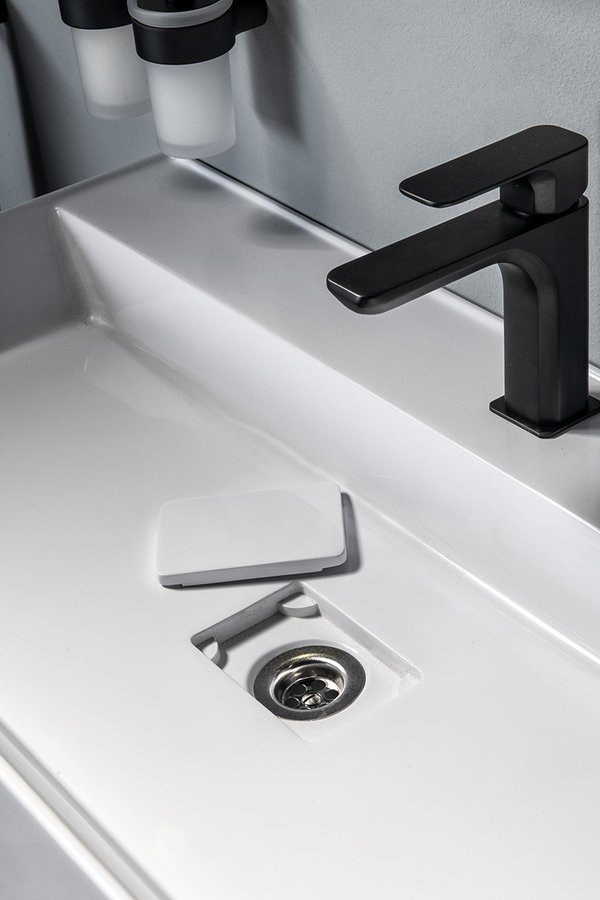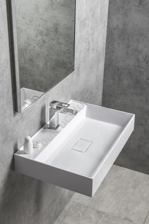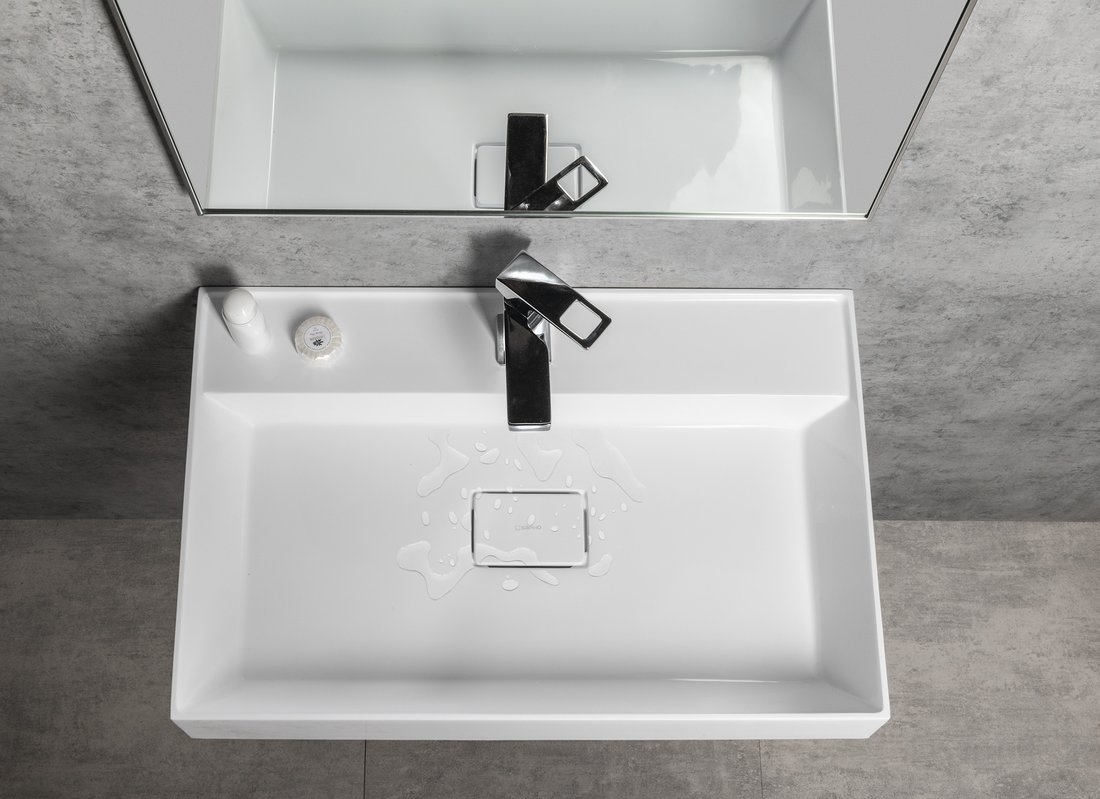• Das Waschbecken ist aus Gussmarmor gefertigt.