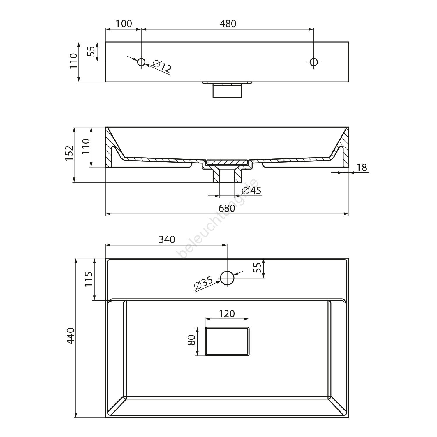 • Die Abmessungen betragen 680x440 mm bei einer Höhe von 110 mm.