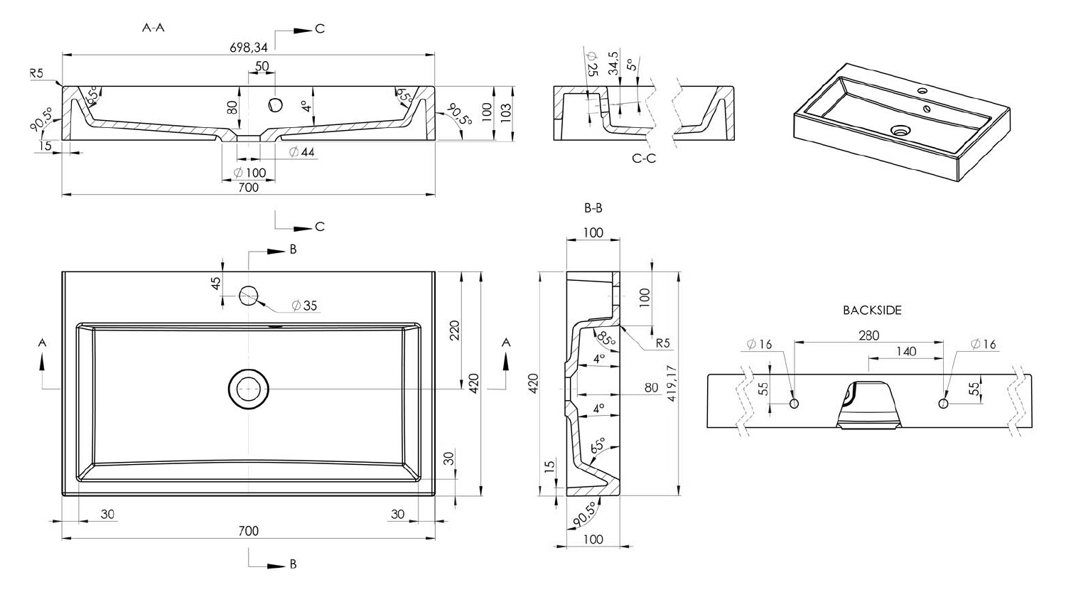 • Das Waschbecken ist aus hochwertigem Gussmarmor gefertigt.