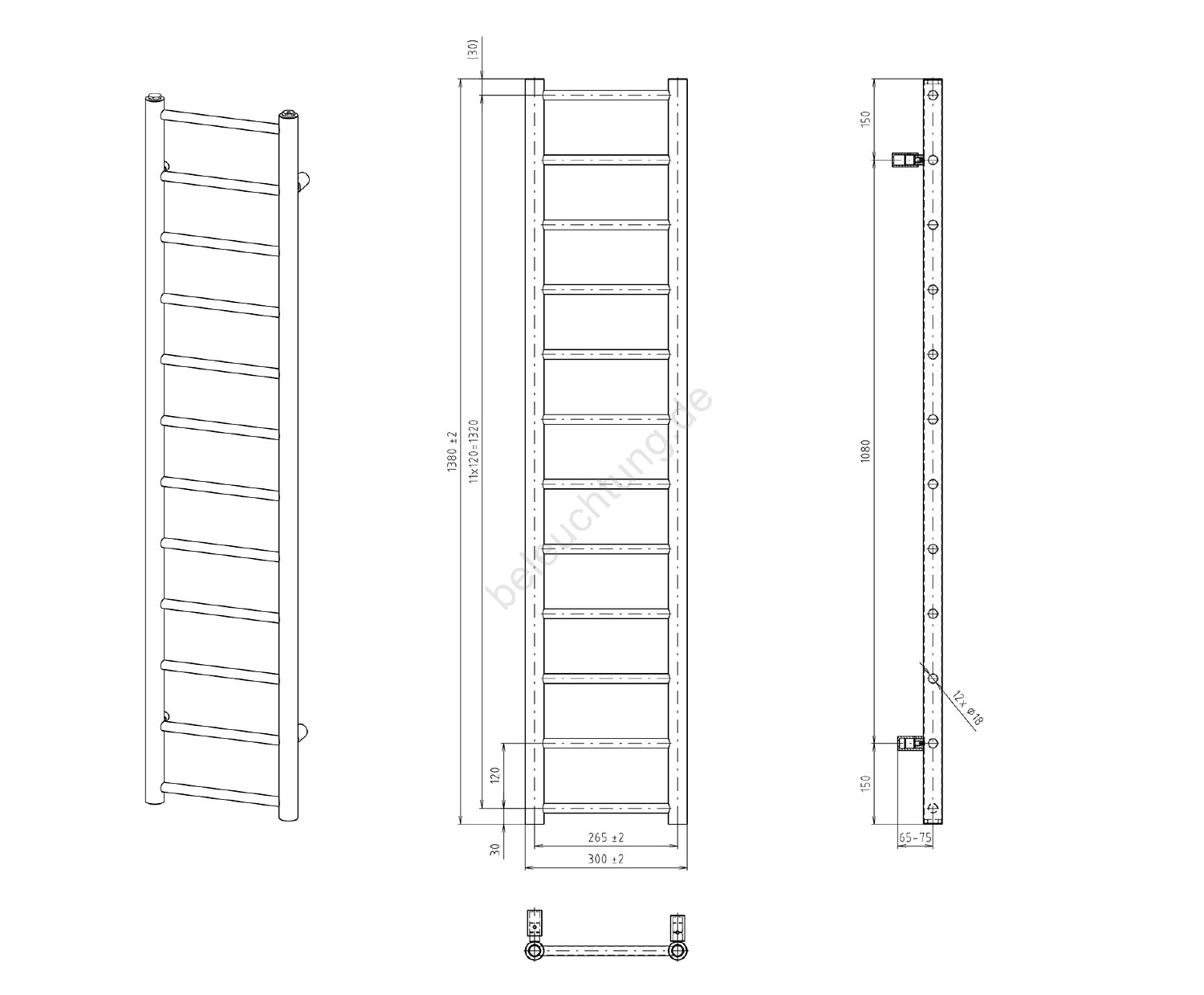 Sapho - Badheizkörper DINA 138x30 cm weiß