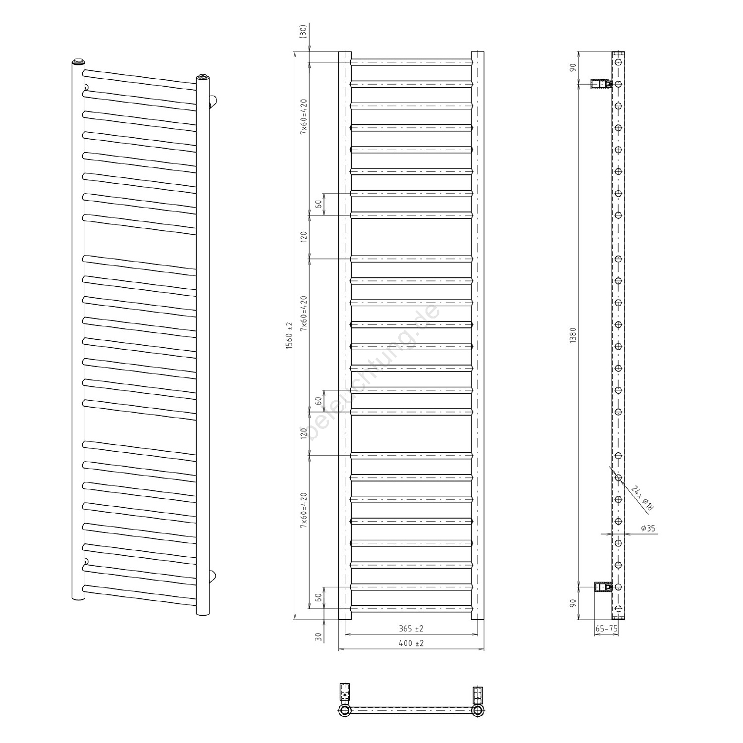 Sapho - Badheizkörper DINA, 477 W, 40 x 156 cm, matt schwarz