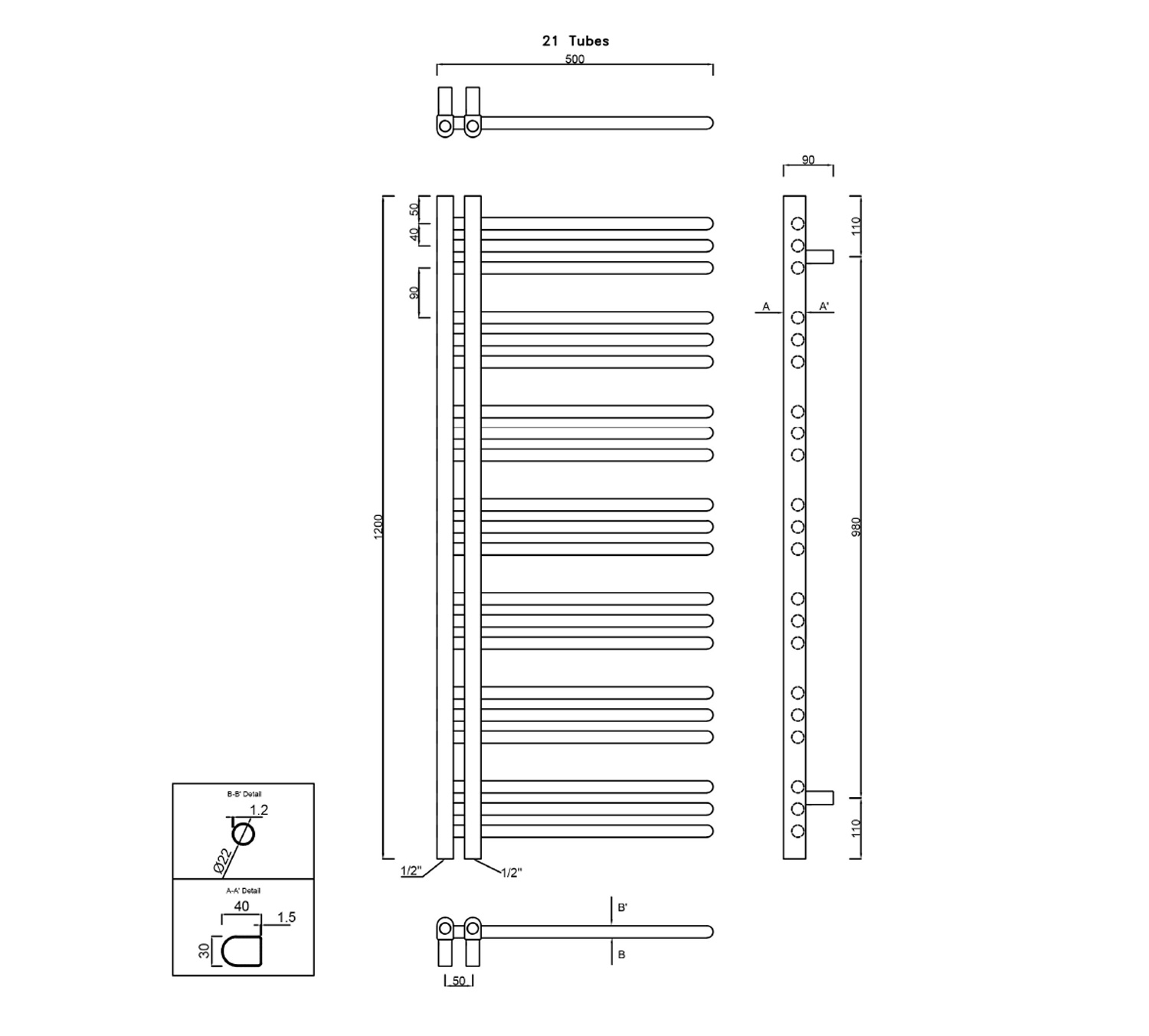 Sapho - Badheizkörper DORLION 378 W/230 V 50 x 120 cm, hochglänzender Chrom