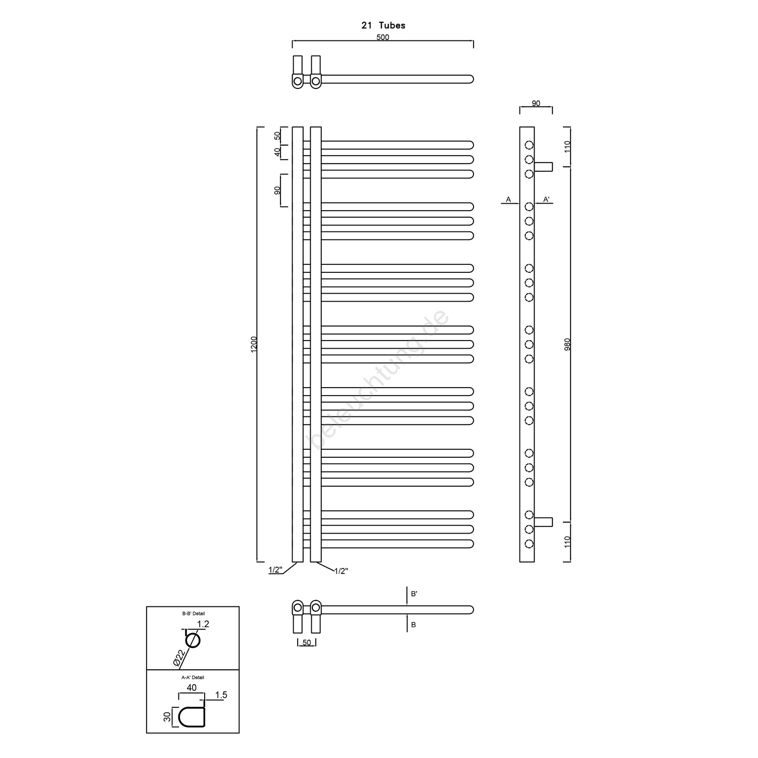 Sapho - Badheizkörper DORLION 400W/230V 50x120 cm weiß