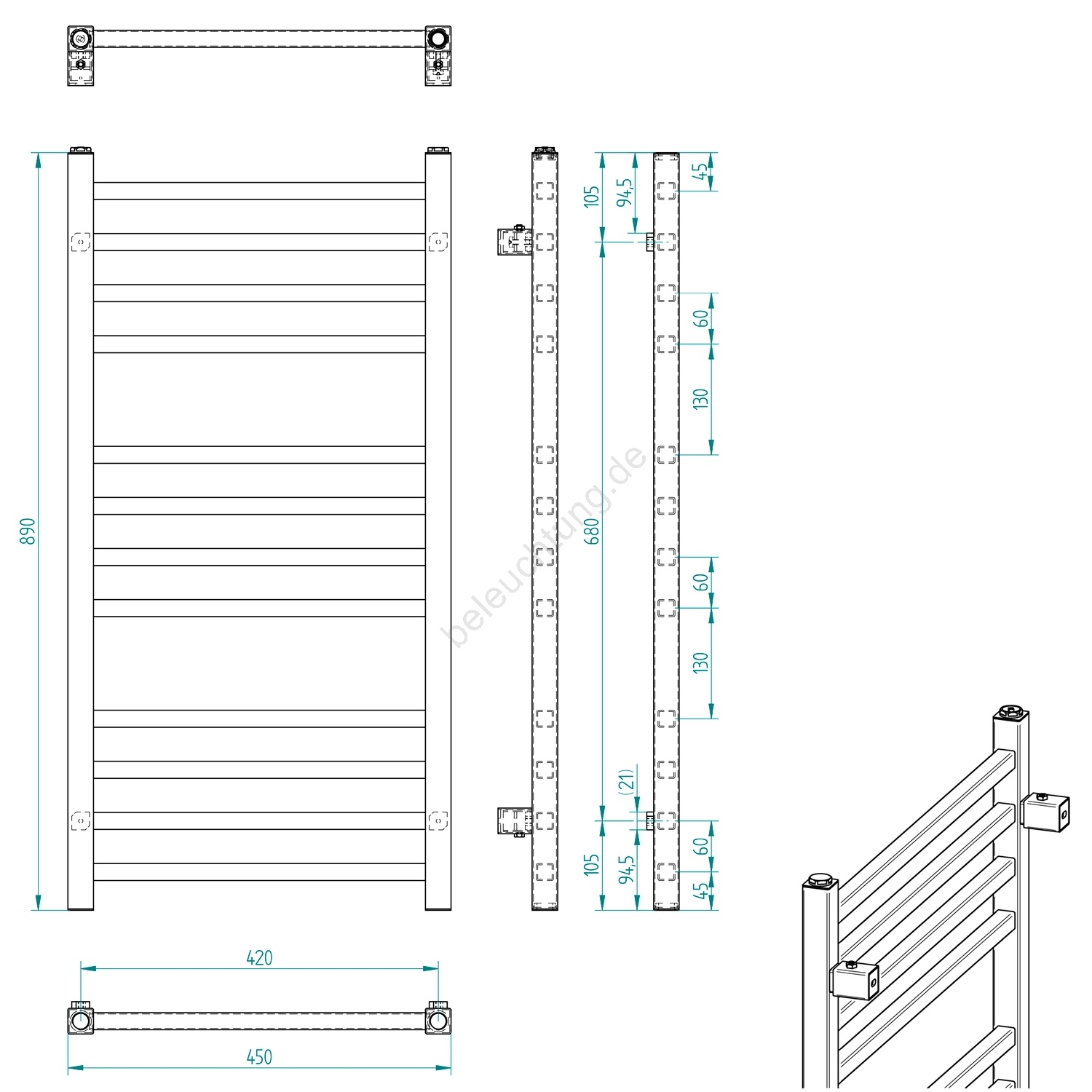 Sapho - Badheizkörper METRO, 266 W, 45 x 89 cm, matt schwarz