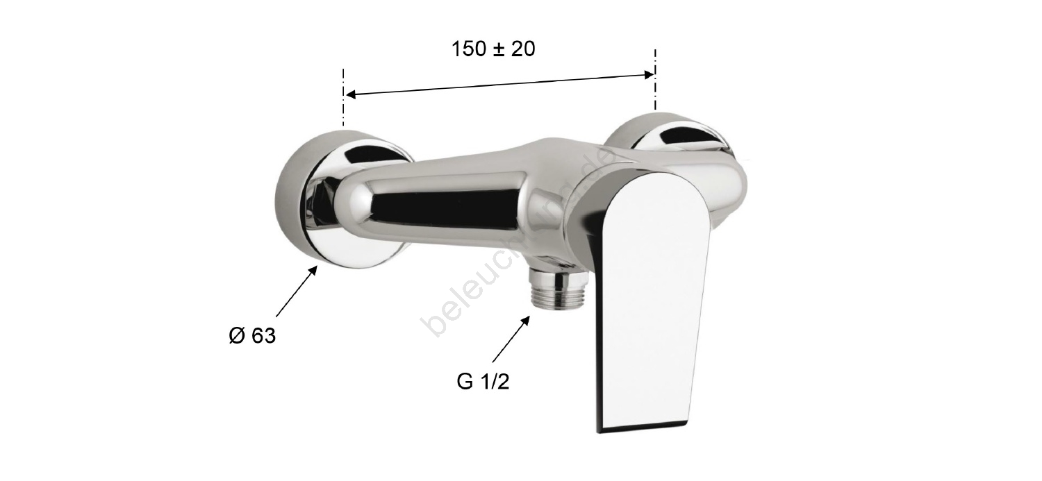 • Diese Duscharmatur verfügt über einen zylindrischen Körper und einen eckigen Auslauf.