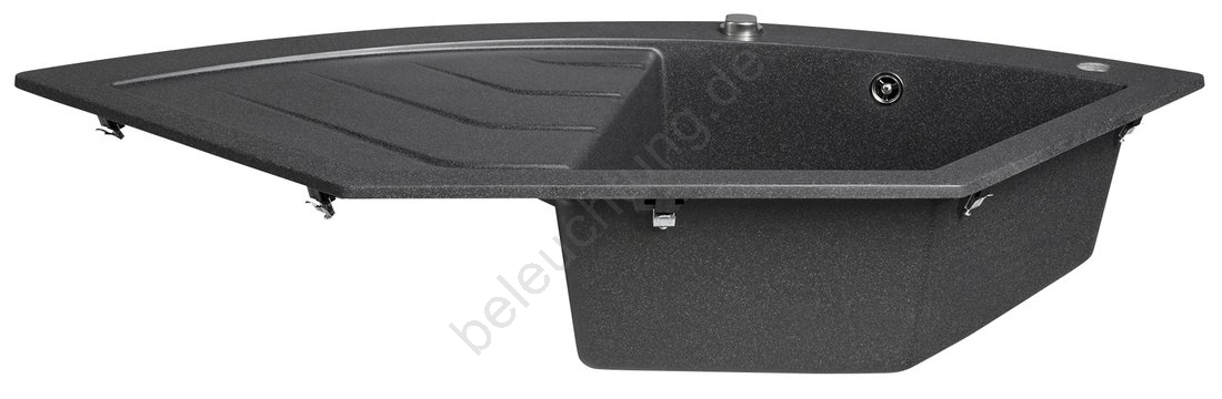 • Die Spüle ist aus Granit gefertigt und überzeugt mit einem platzsparenden Eck-Design.