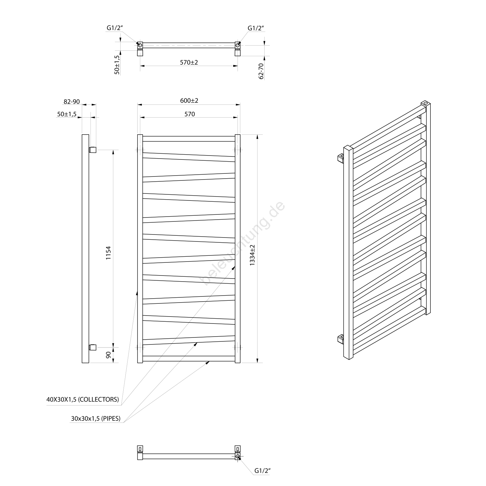 Sapho - Badheizkörper ZIG 601W/230V 60x133 cm schwarz