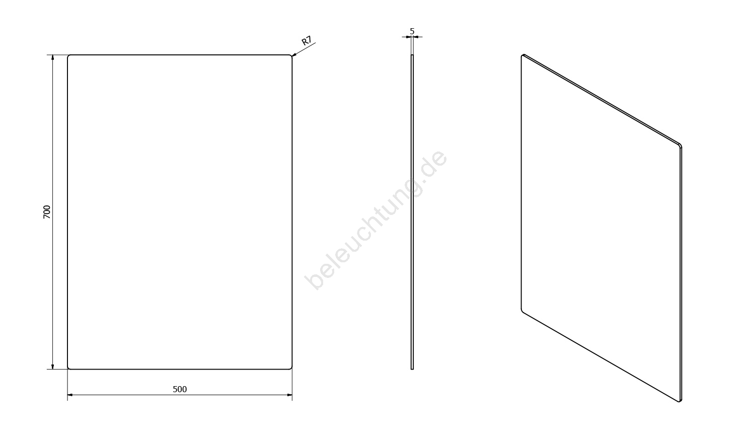 • Geschliffener Spiegel ohne Facettenschliff.