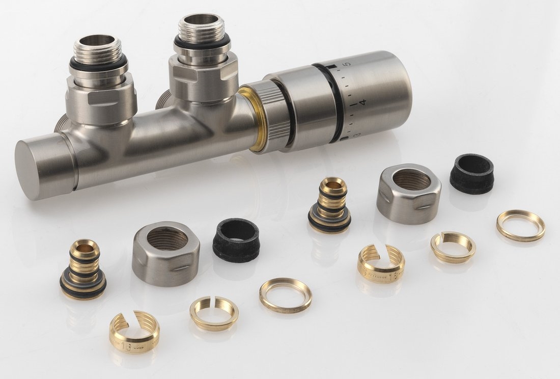 Sapho - Thermostatisches Anschlussset TWIN für Mittelanschluss, mattierter Edelstahl