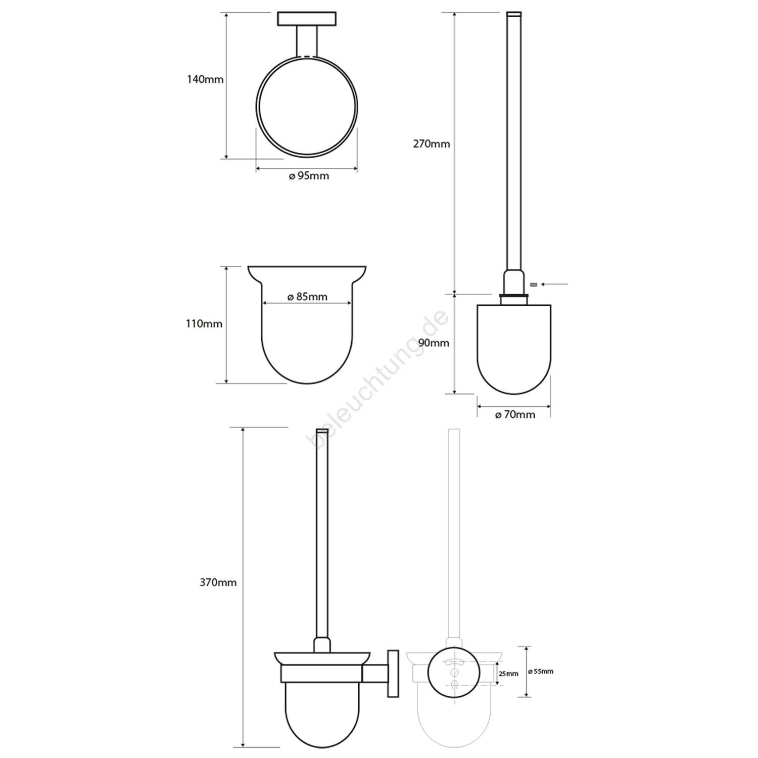 • Diese WC-Bürste ist zur Wandmontage geeignet und aus Milchglas gefertigt.