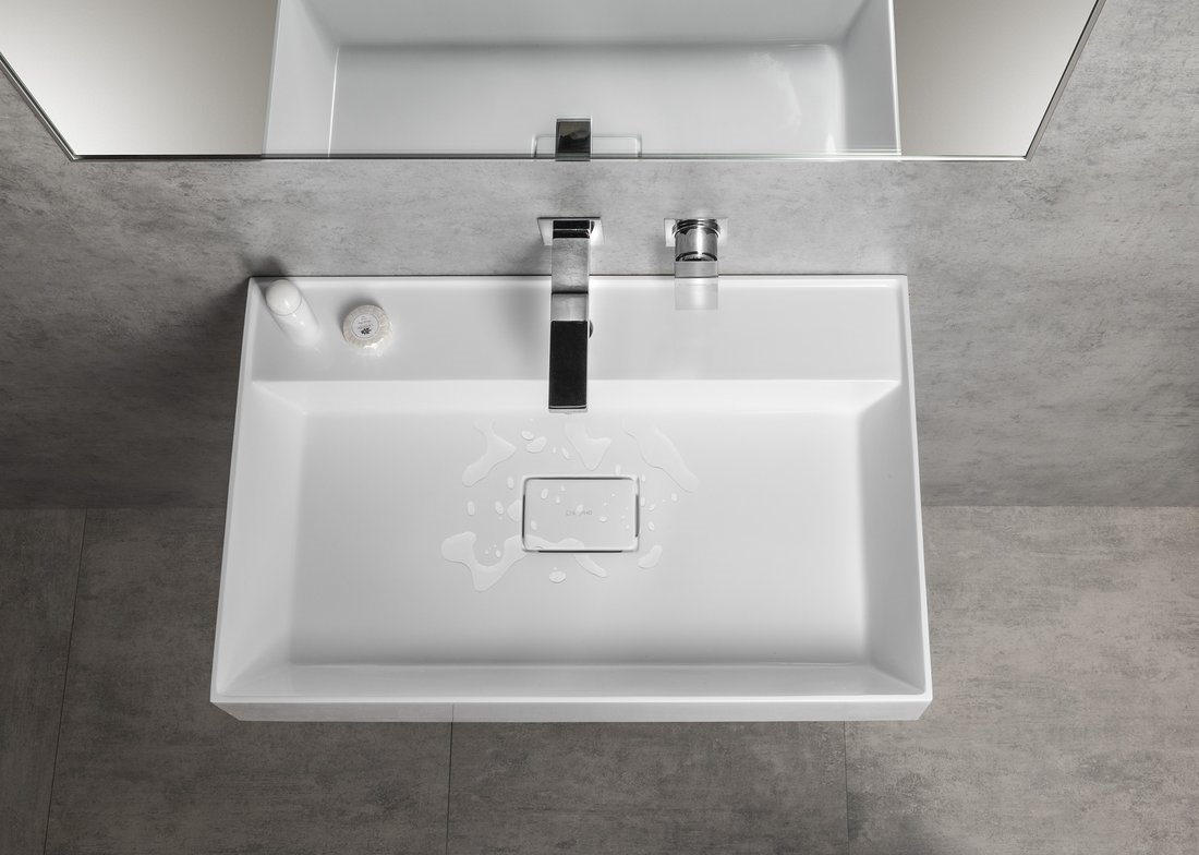 • Das Waschbecken ist aus hochwertigem Mineralguss gefertigt.