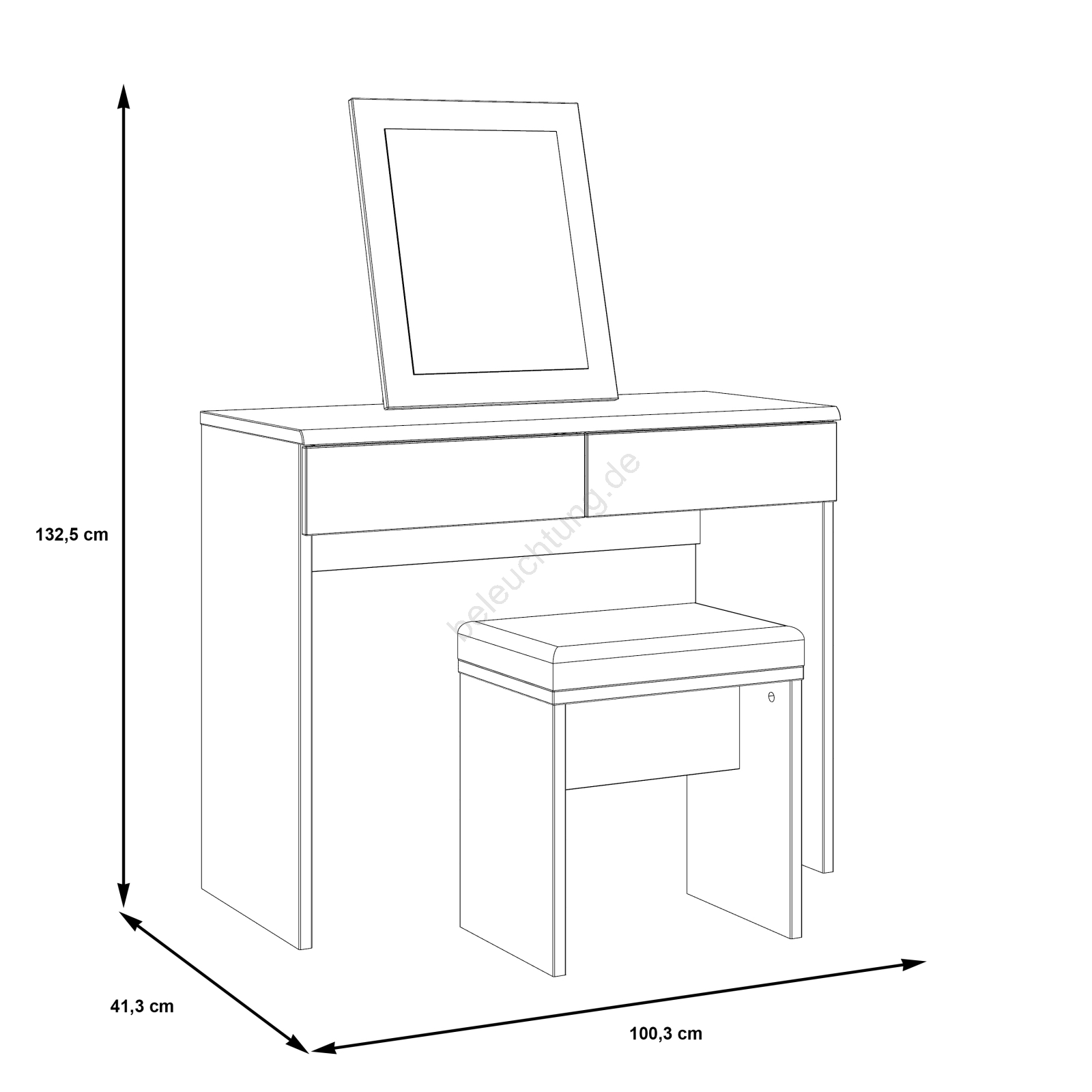 • Er verfügt über zwei Schubladen, die Ihnen reichlich Stauraum für Kosmetik und weitere Utensilien bieten.